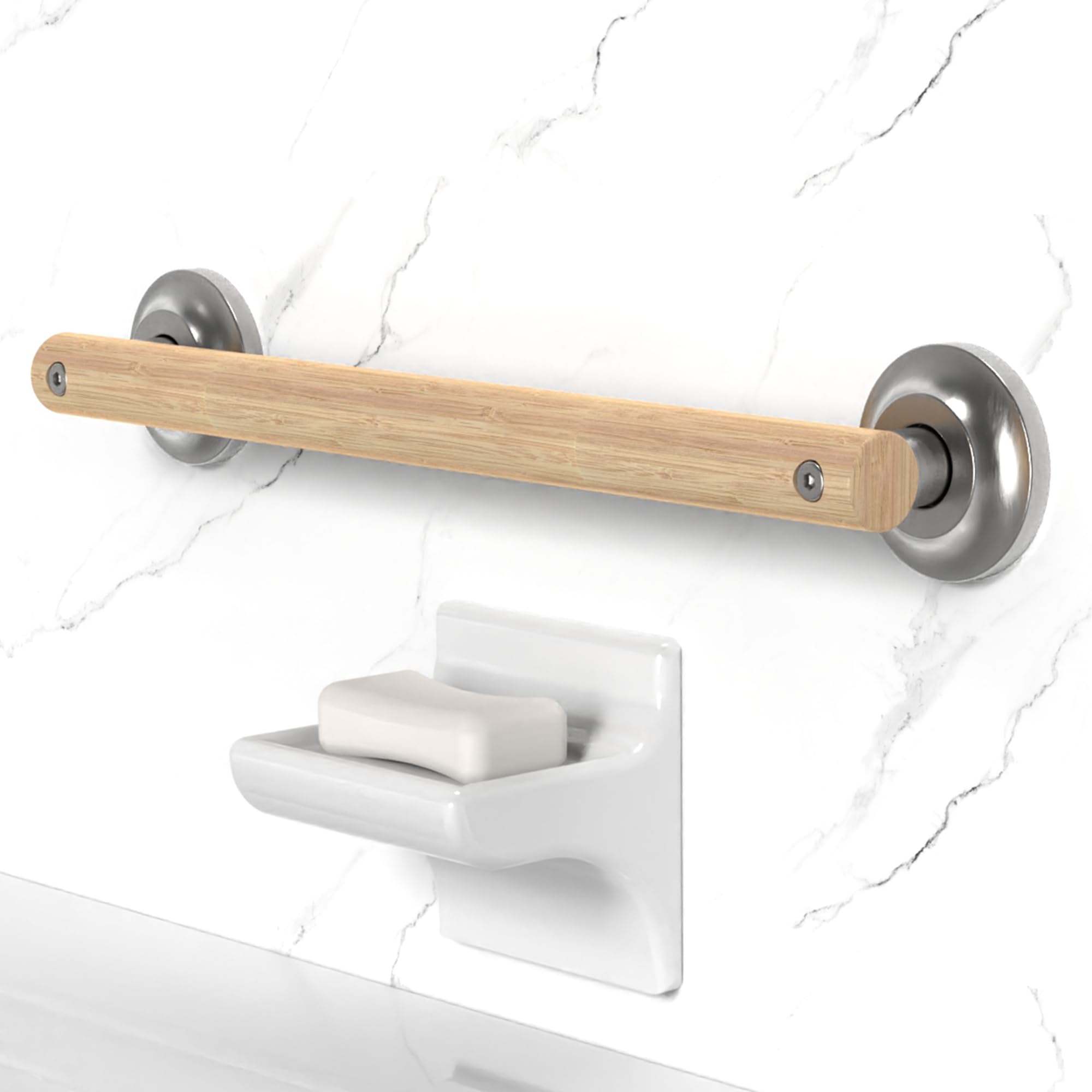 Barra de agarre de bambú natural para baño e inodoro, pasamanos de asistencia de equilibrio compatible con ADA para discapacitados