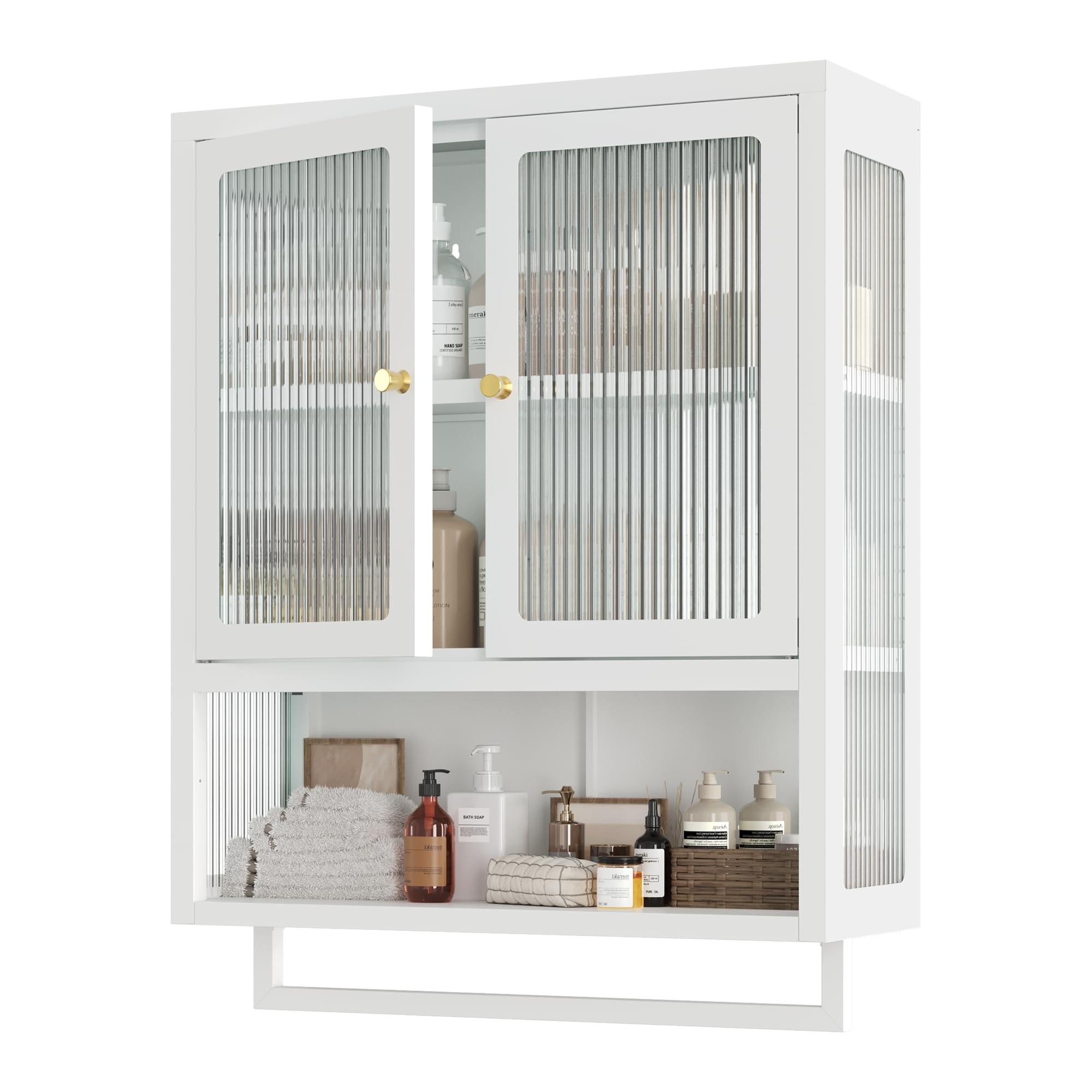 Armario de pared de baño con 2 puertas de vidrio, botiquín de baño con barra de toallas y estantes, gabinete de almacenamiento sob