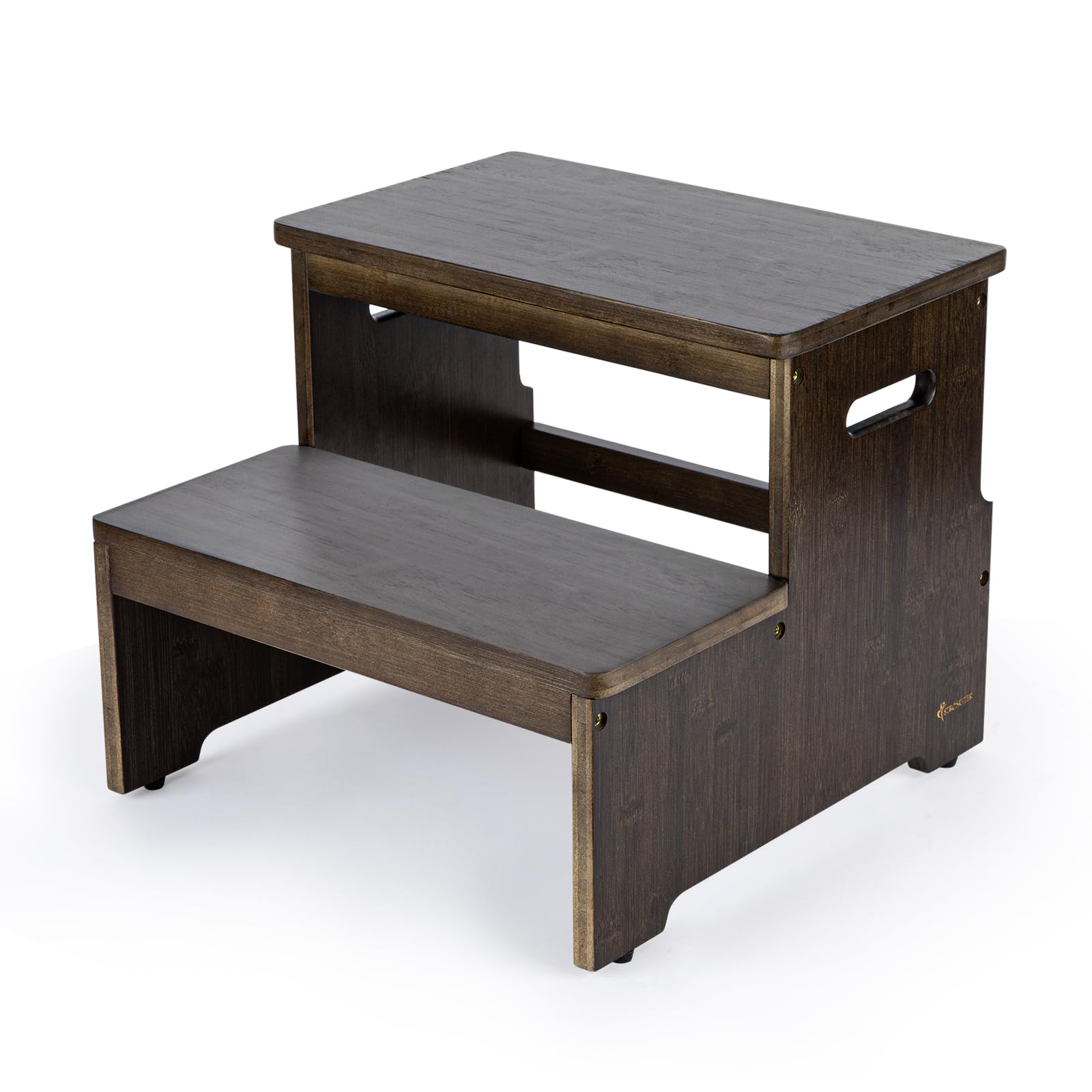 StrongTek Taburete extra ancho de bambú de dos escalones, 400 libras de capacidad, taburetes resistentes con almohadillas antidesl