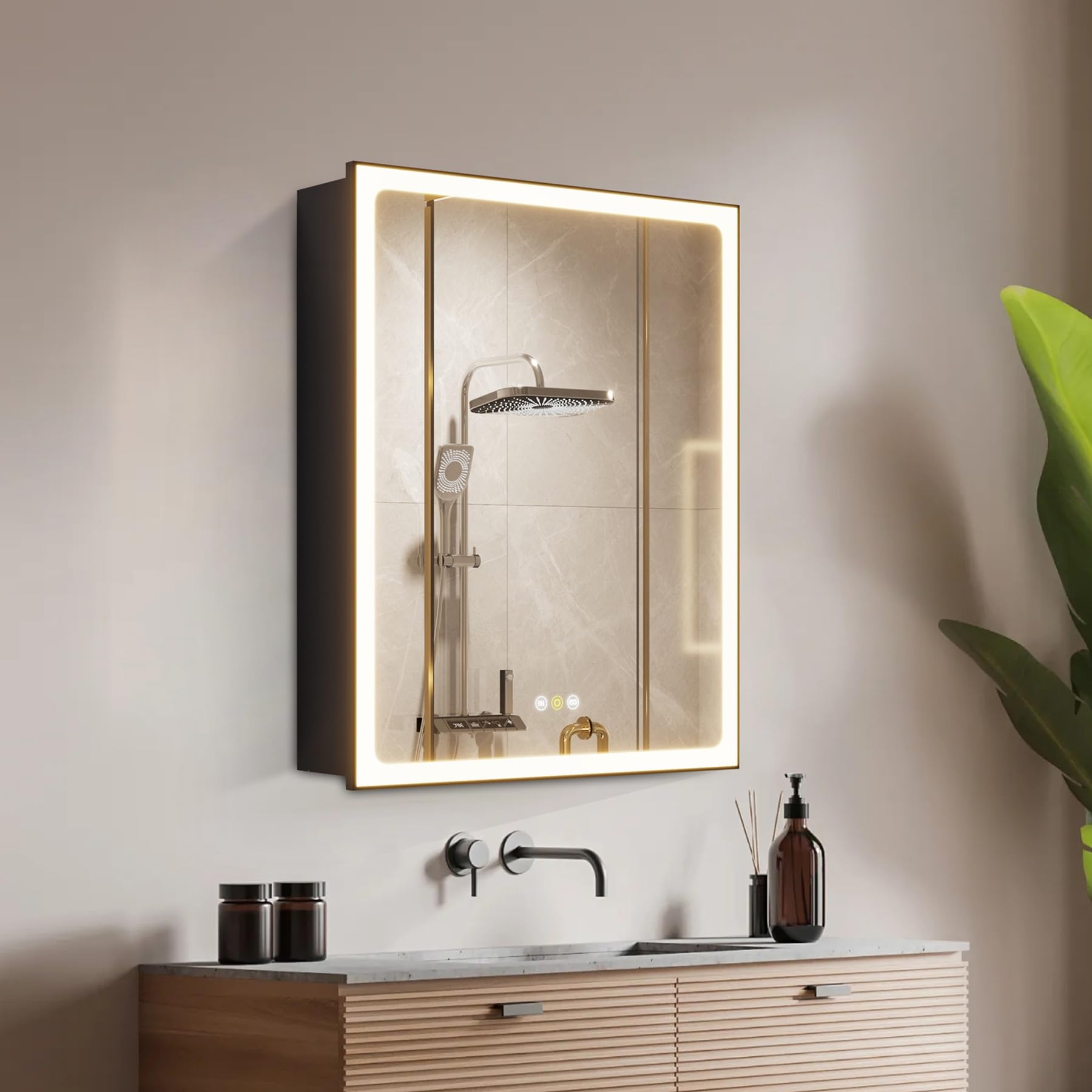 Armario de espejo de baño con iluminación LED de 16 x 26 pulgadas con antiempañamiento, regulable, salida USB e iluminación de 3 c