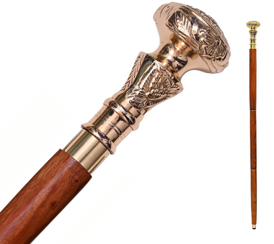 Humaira Nautical Bastón victoriano de latón con mango de latón con bastón de madera negro (3 dobleces de madera), 36 pulgadas