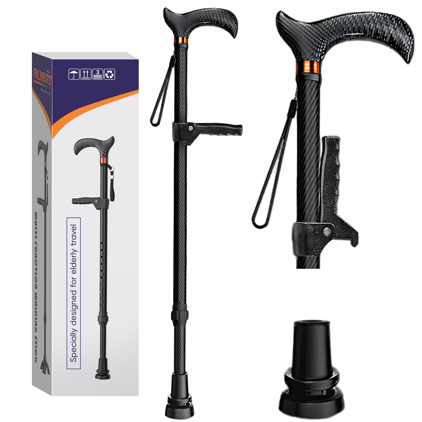 Bastón plegable para hombres y mujeres, bastón ligero portátil, altura ajustable, punta de goma antideslizante, incluye bolsa de a