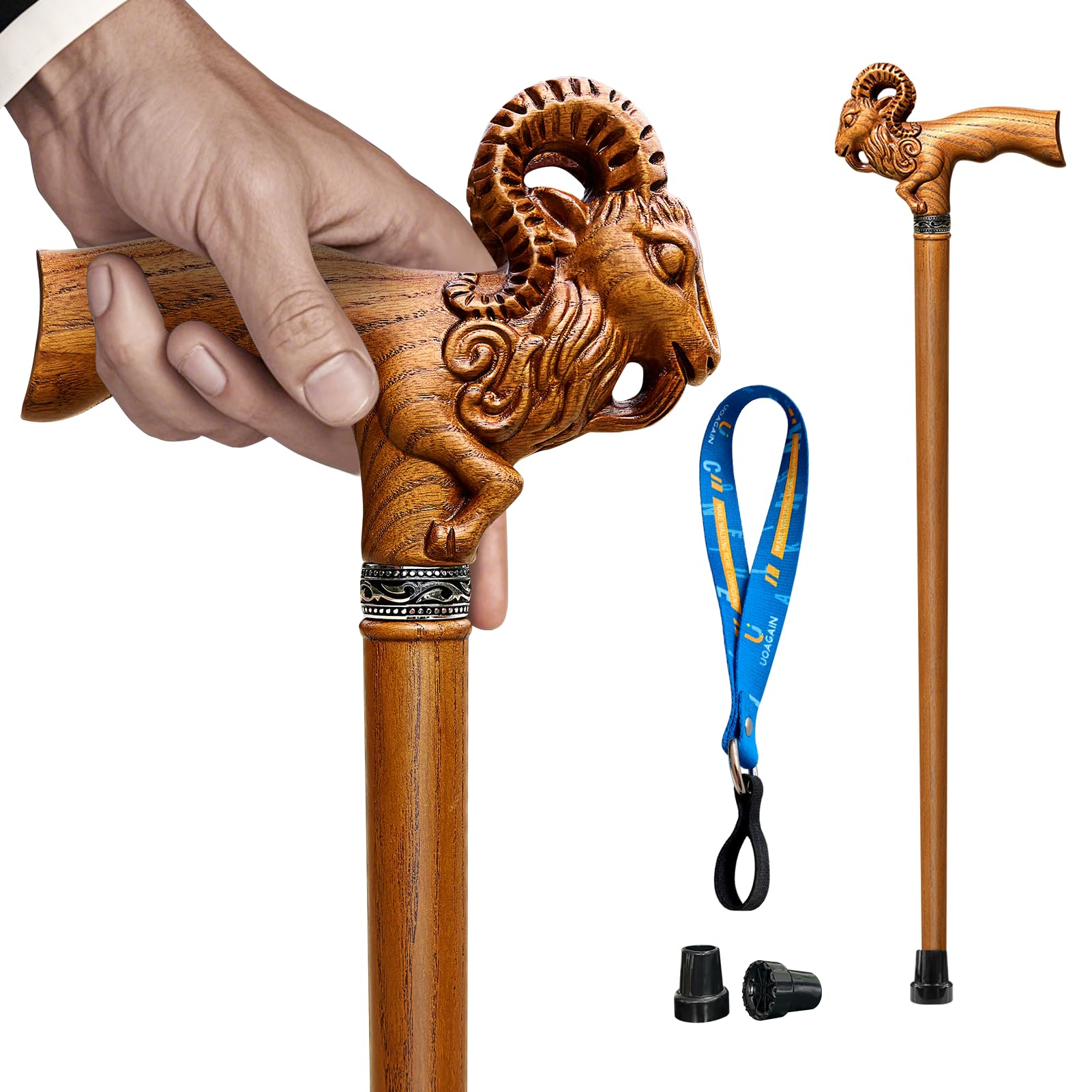 Bastón de madera tallado a mano, ultraligero, 0.88 libras, soporta hasta 500 libras, bastón de madera maciza de alta gama para per
