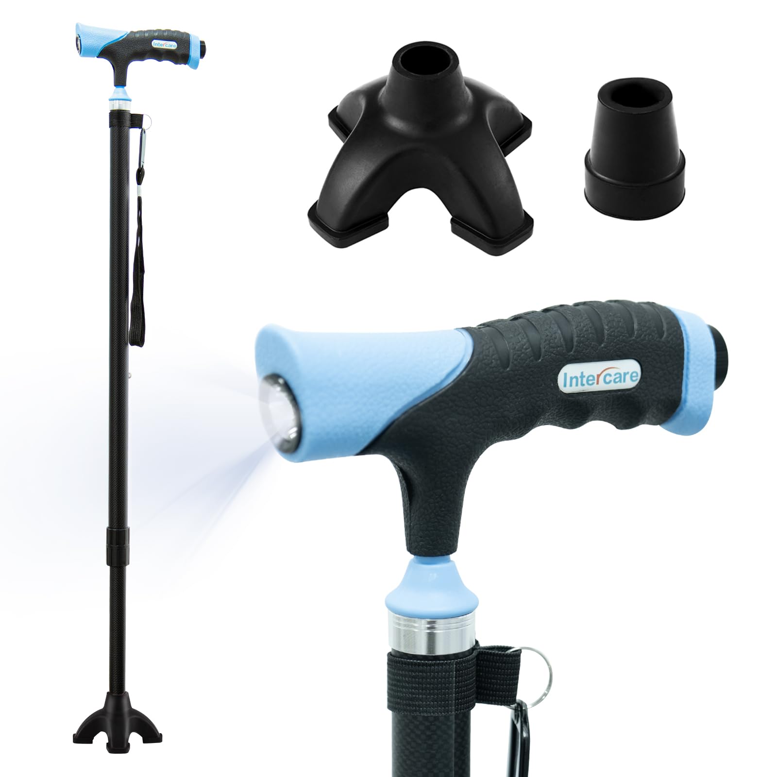 Bastón de caminar para hombres para estabilidad, bastones para caminar con luz, bastones cuádruples ajustables para hombres con do