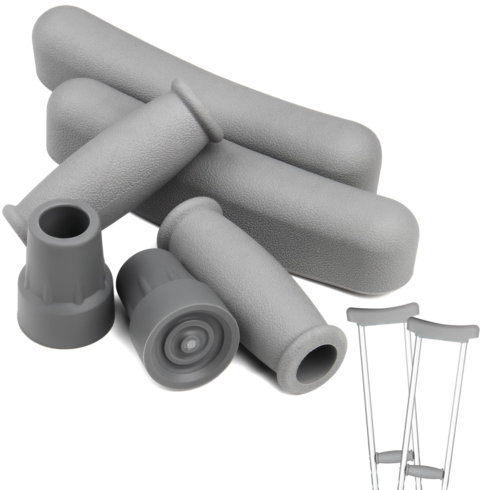 Puntas de muletas, paquete de 8 accesorios para muletas, puntas de muleta de 7/8 pulgadas resistentes, mejoradas para muletas, gri