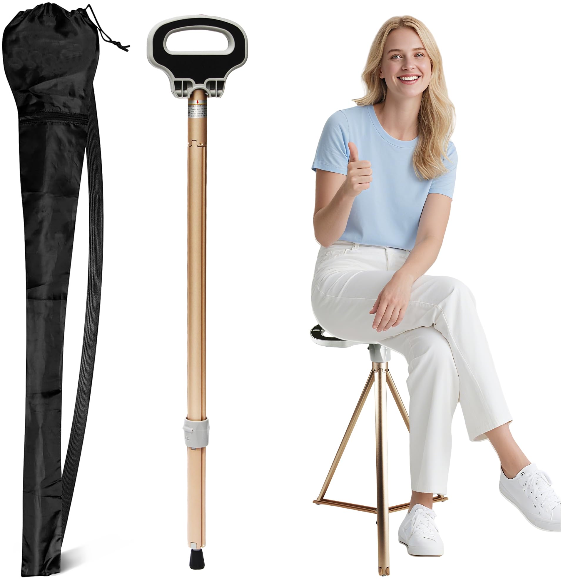 ALEVMOOM Bastón plegable con asiento para hombres y mujeres, silla portátil de caña de carga máxima de 440 libras, bastón con asie