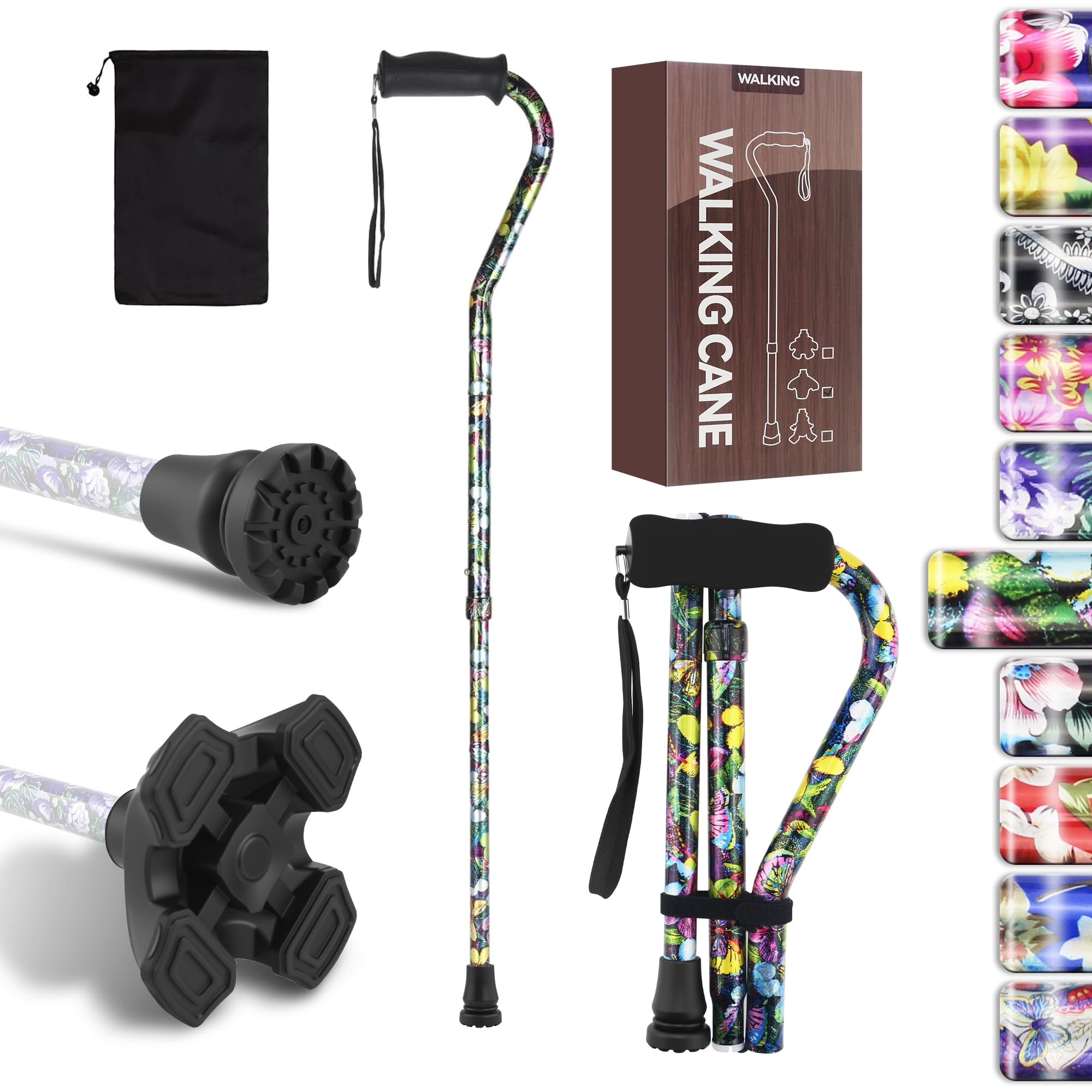 Bastón de caminar para personas mayores, bastones frescos para mujeres y hombres, ajustables, plegables, plegables con bolsa de al