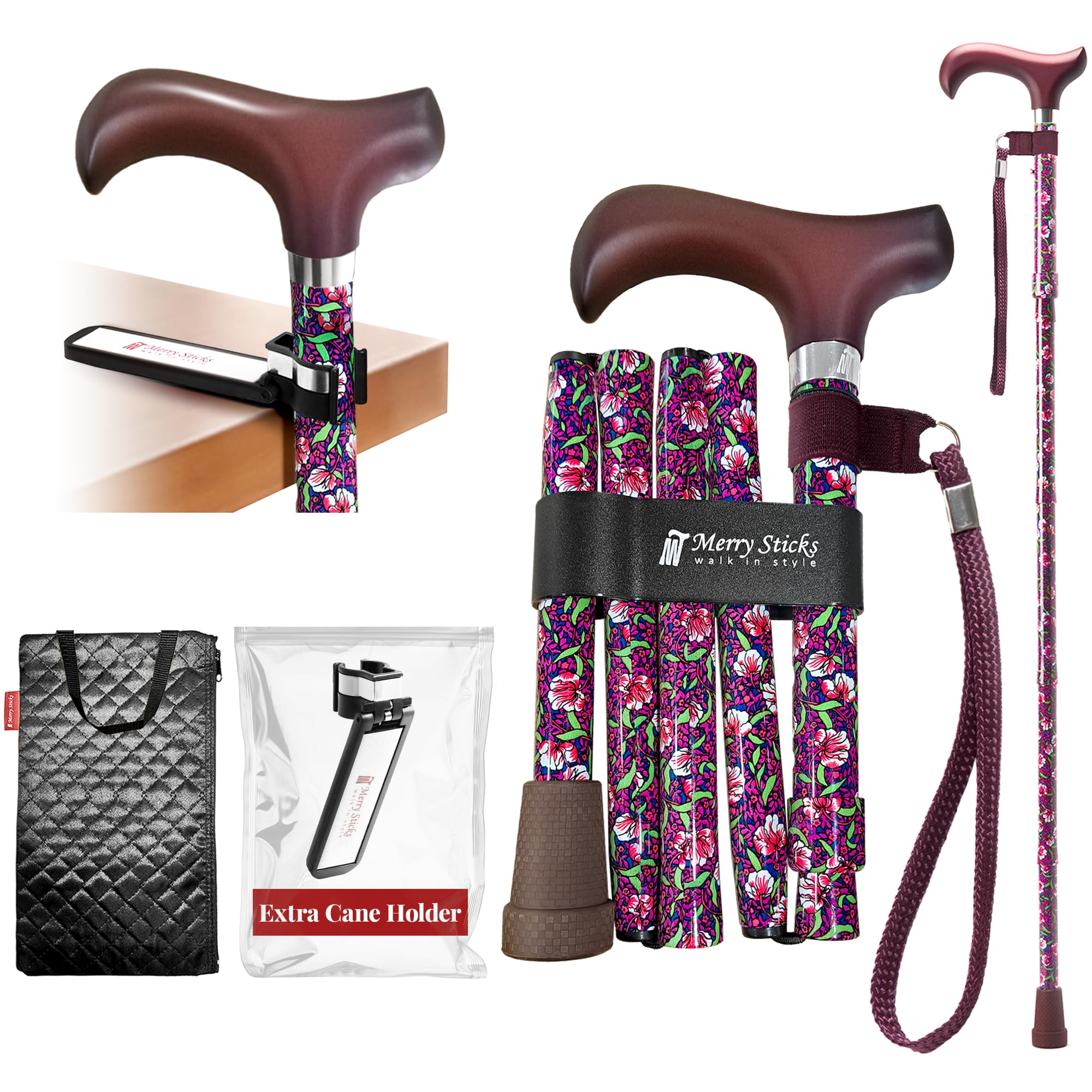 [Combo] Merry Sticks – Bastones de caminar plegables ligeros para mujeres y hombres, bastón ajustable y plegable para personas may