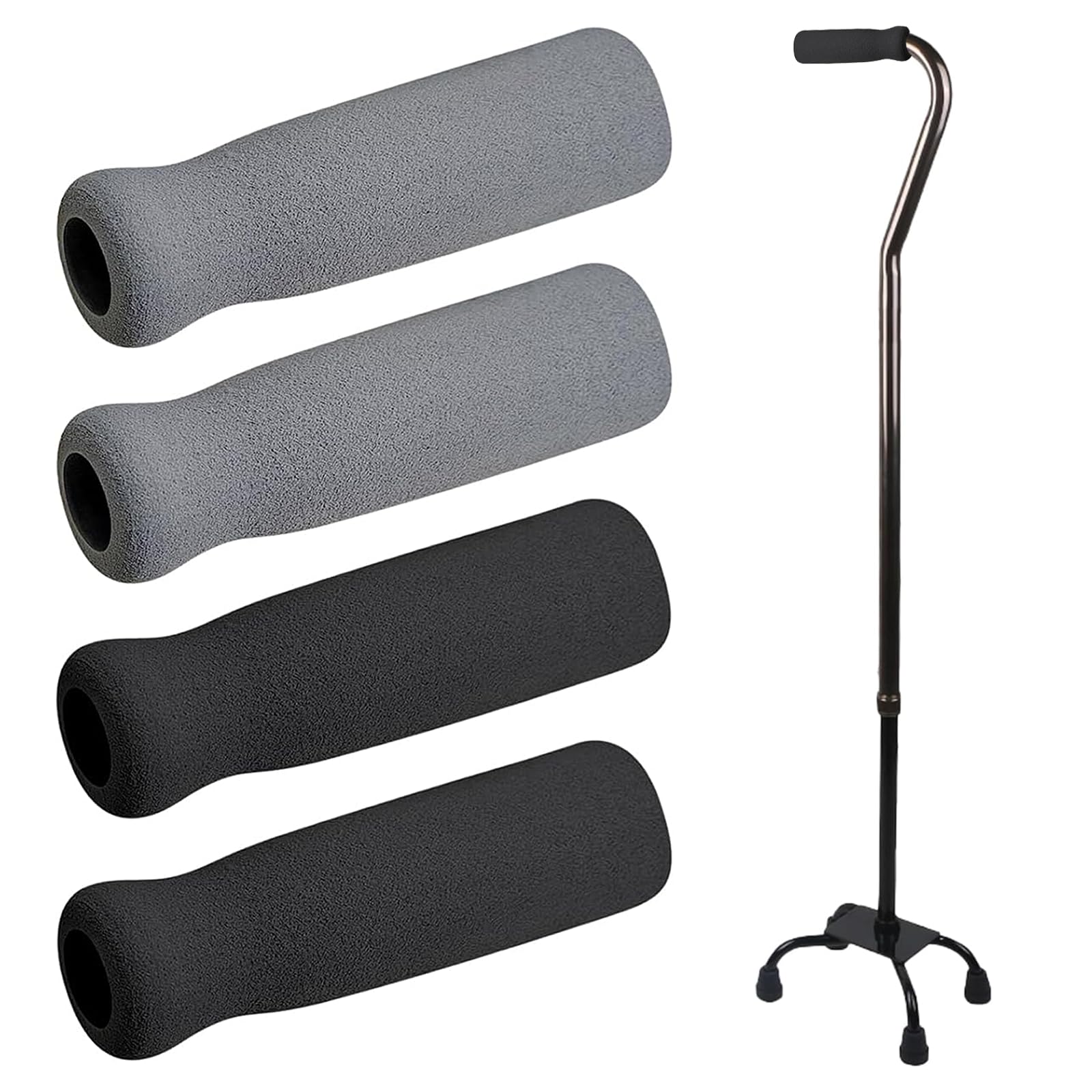 Paquete de 2 bases de bastón de pie para la mayoría de bastones para caminar, almohadilla de goma resistente de 4 puntas, color ne