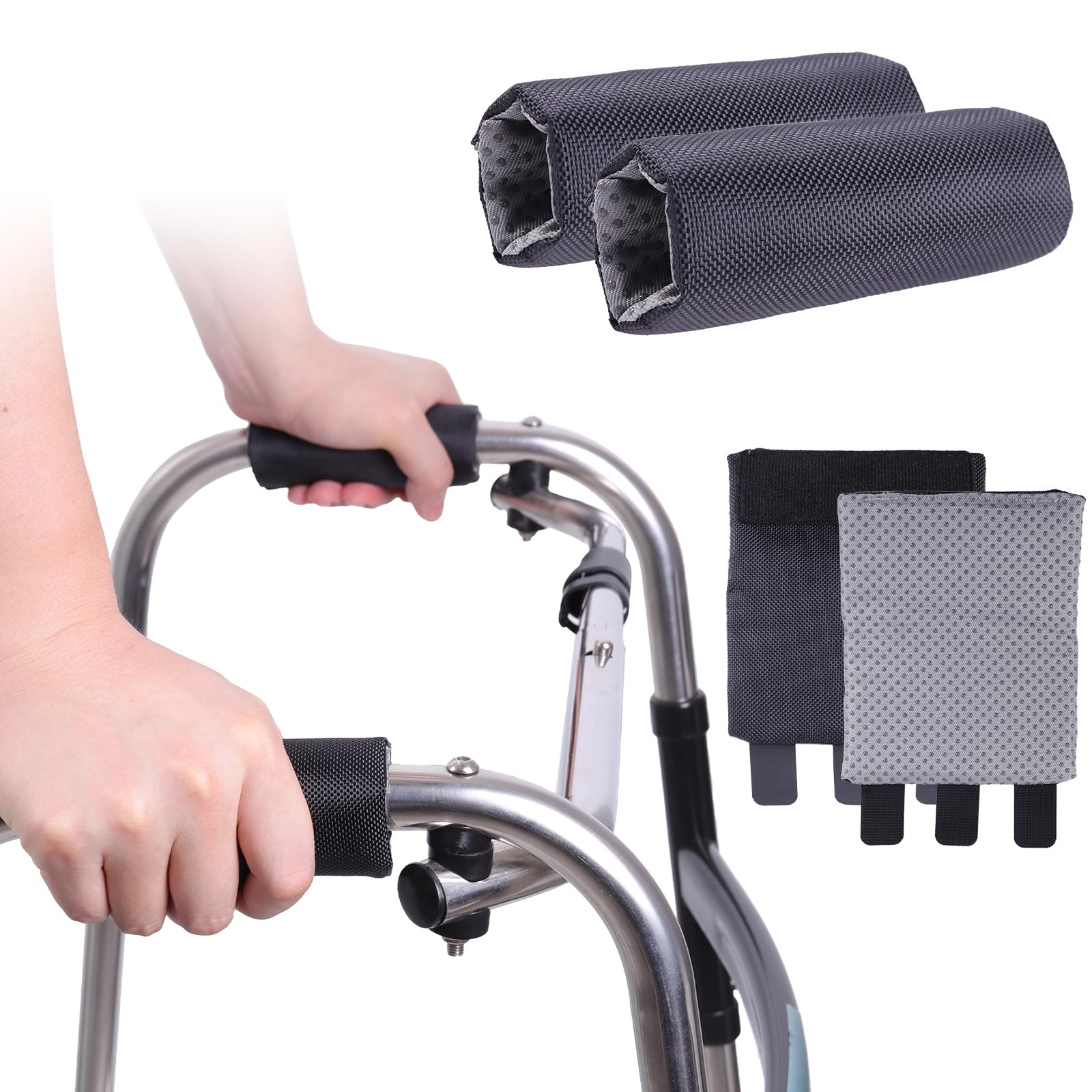 Cojines para mango de andador (paquete de 2), fundas acolchadas suaves para manos, acolchado antideslizante y cómodo para mango pl