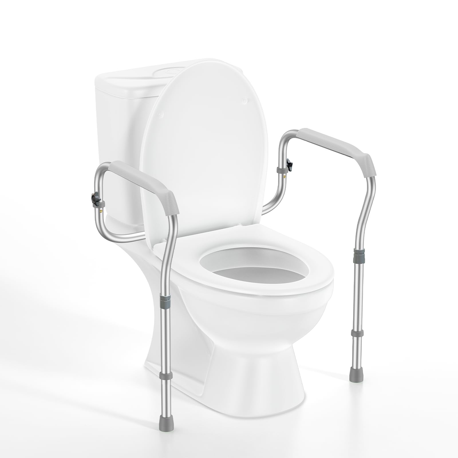 Riel de seguridad para inodoro para personas mayores con 2 tuercas reforzadas, marco de seguridad de inodoro ajustable en altura y