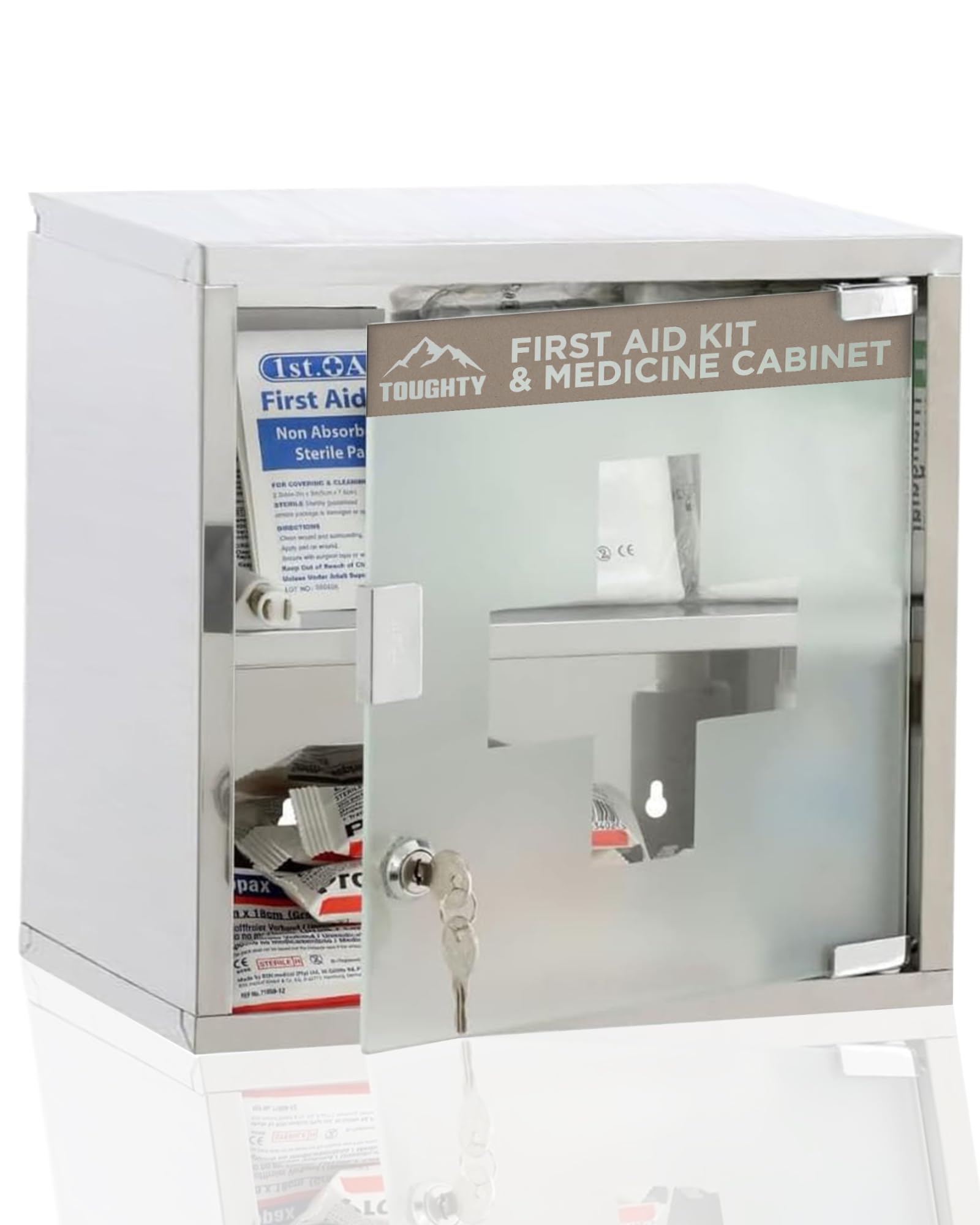 Toughty Gabinete médico con bloqueo, organizador de primeros auxilios montado en la pared para almacenamiento médico, gabinete de