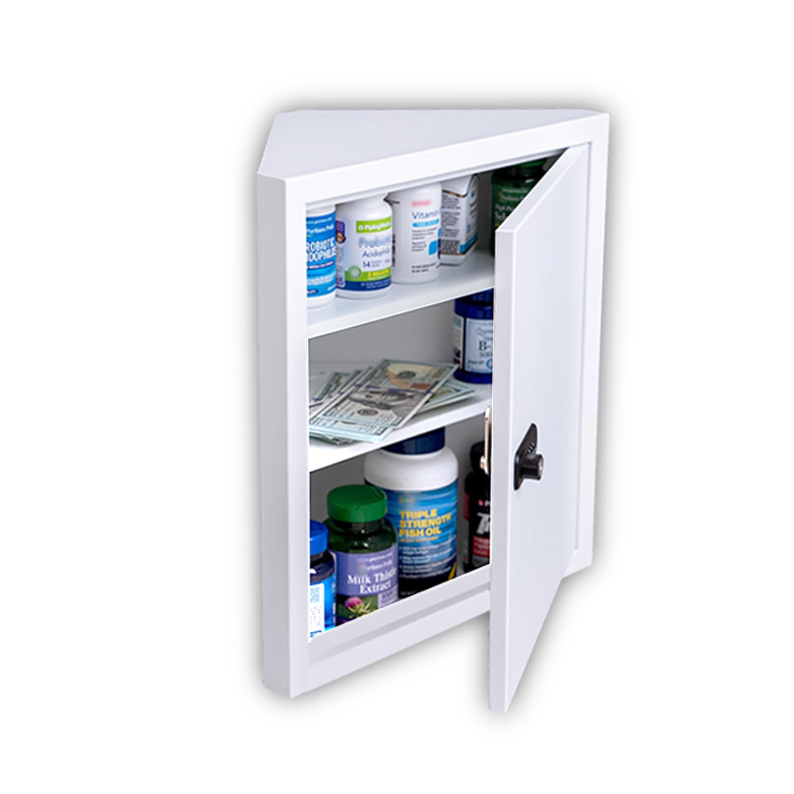 Botiquín de montaje en pared, armario de esquina con bloqueo con código y cerraduras de llave, gabinete de primeros auxilios/gabin