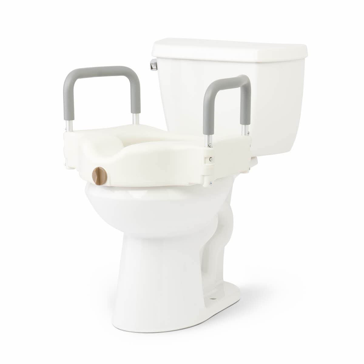 Medline Elevador de asiento de inodoro estándar con brazos, altura de 3.5 pulgadas, capacidad de peso de 400 libras, ayuda de baño