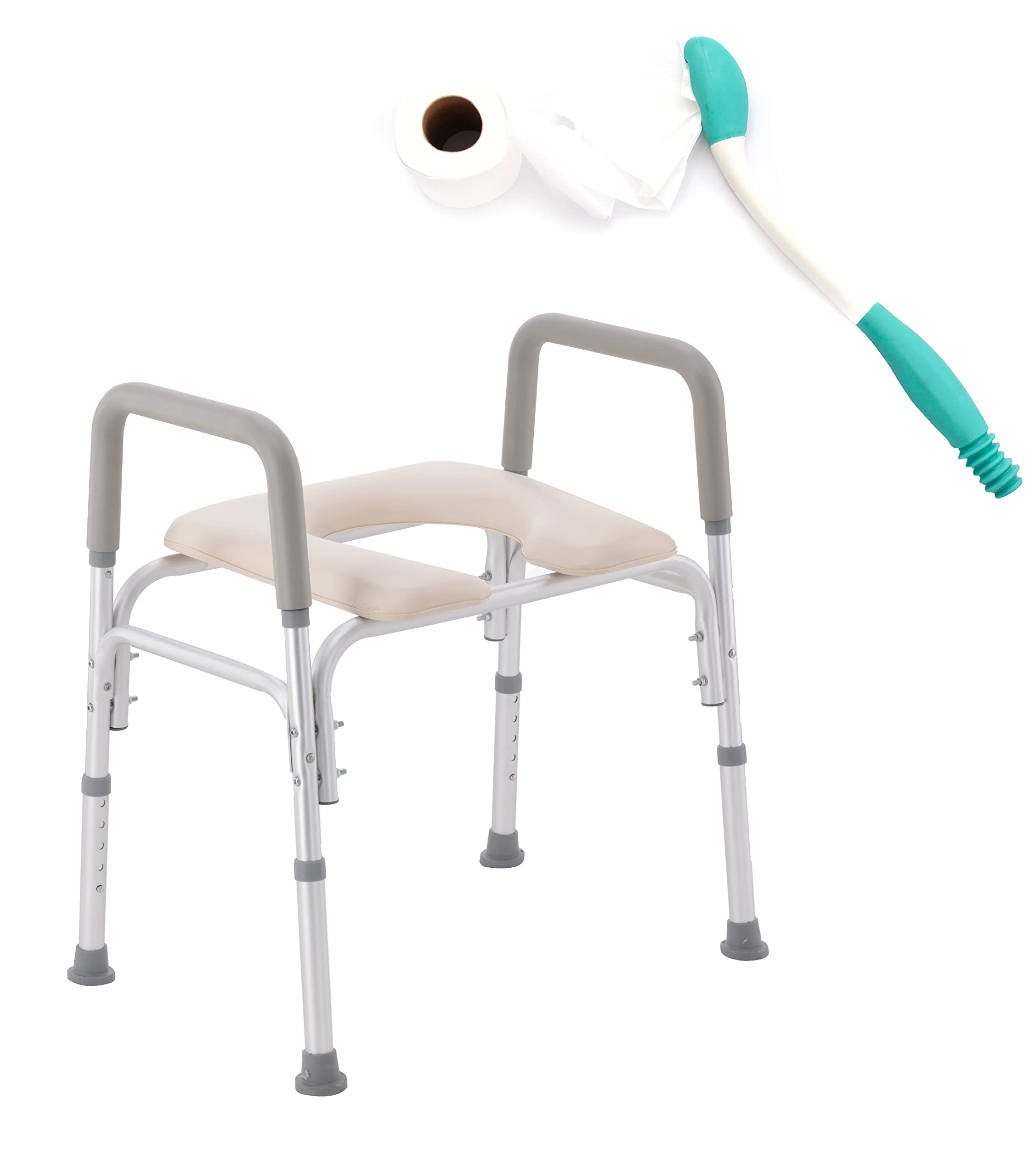Asiento de inodoro elevado, elevador médico elevado con asas acolchadas, para personas mayores, discapacitados y discapacitados, c