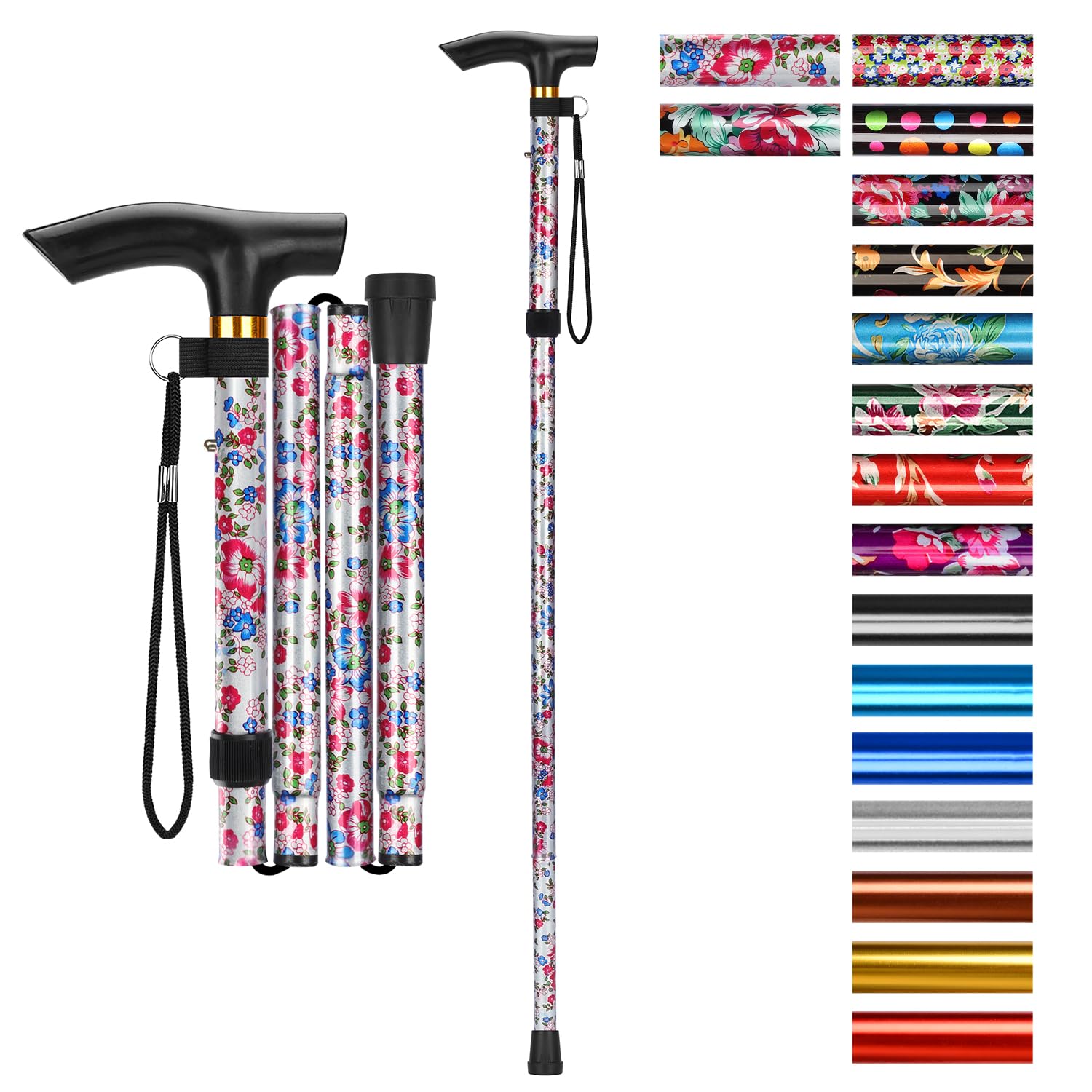 supregear Bastón plegable, bastón de viaje portátil de 5 niveles de altura ajustable, ligero, plegable, portátil, con correa para