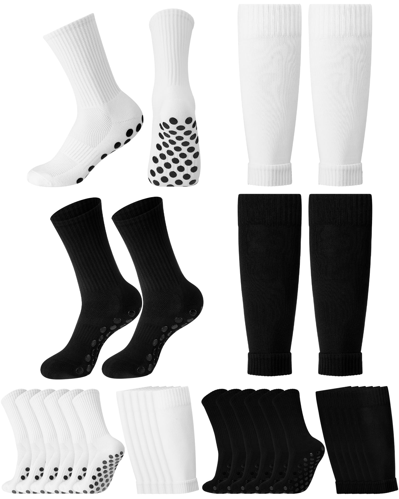 Eurzom 4 juegos de calcetines de fútbol de agarre con mangas de protección de espinilleras para hombre, almohadillas antideslizant