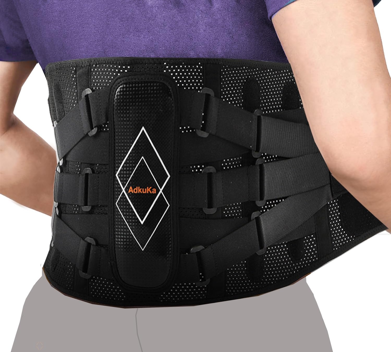 Soporte de espalda para aliviar el dolor de espalda baja con almohadilla lumbar 3D, cinturón de apoyo de espalda 6X con tiras alte