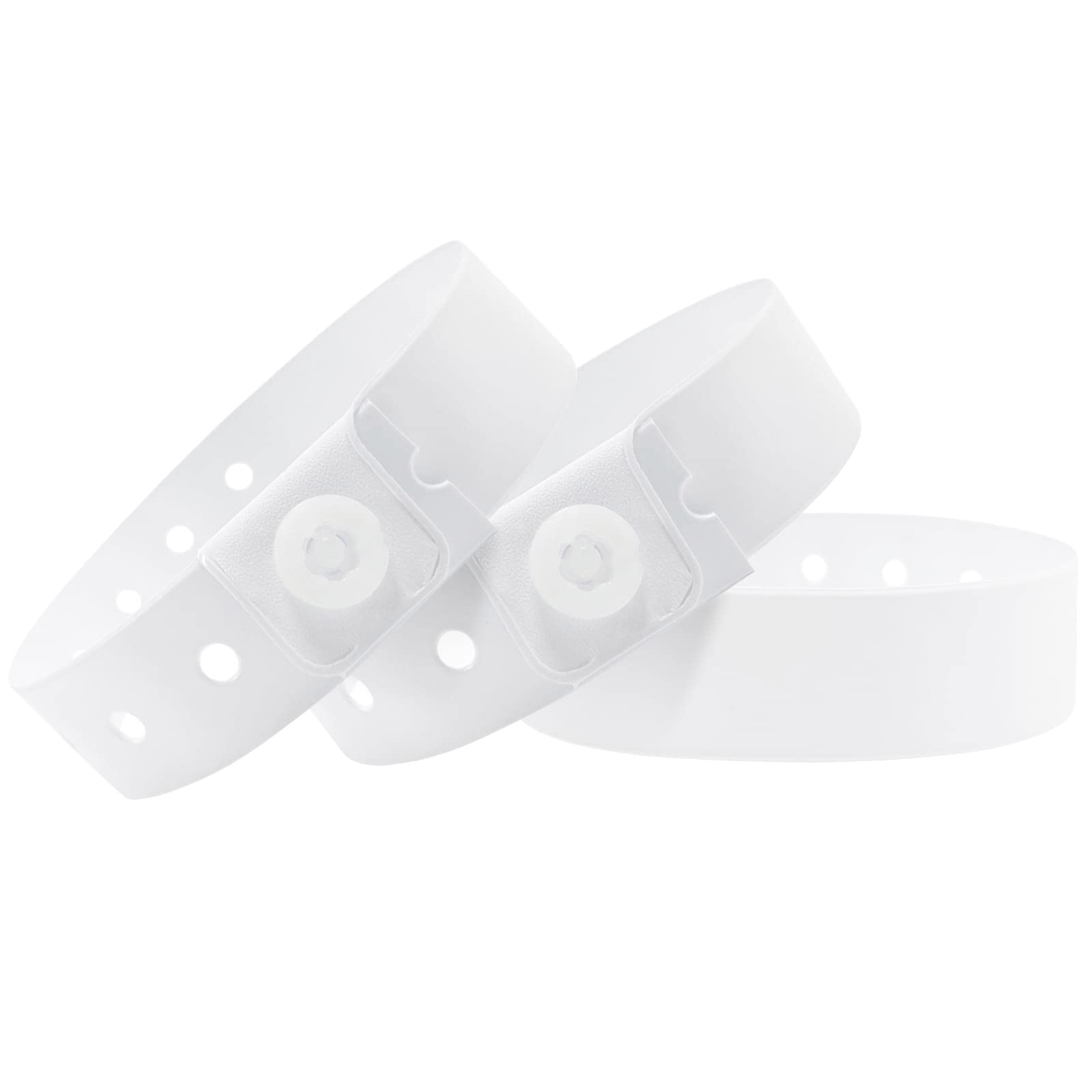 Pulseras de plástico blancas para fiestas, paquete de 100 pulseras de vinilo de colores para eventos, impermeables, ligeras, de se