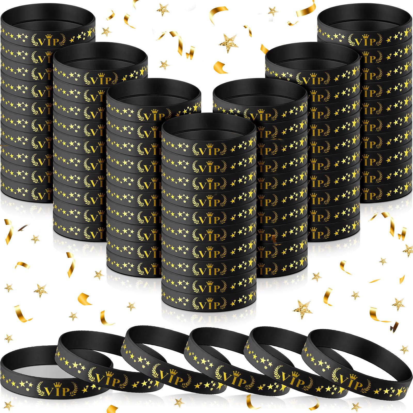 Cunno 100/200 pulseras VIP de silicona reutilizables, color negro y dorado, pulseras de identificación para eventos, fiestas, fest