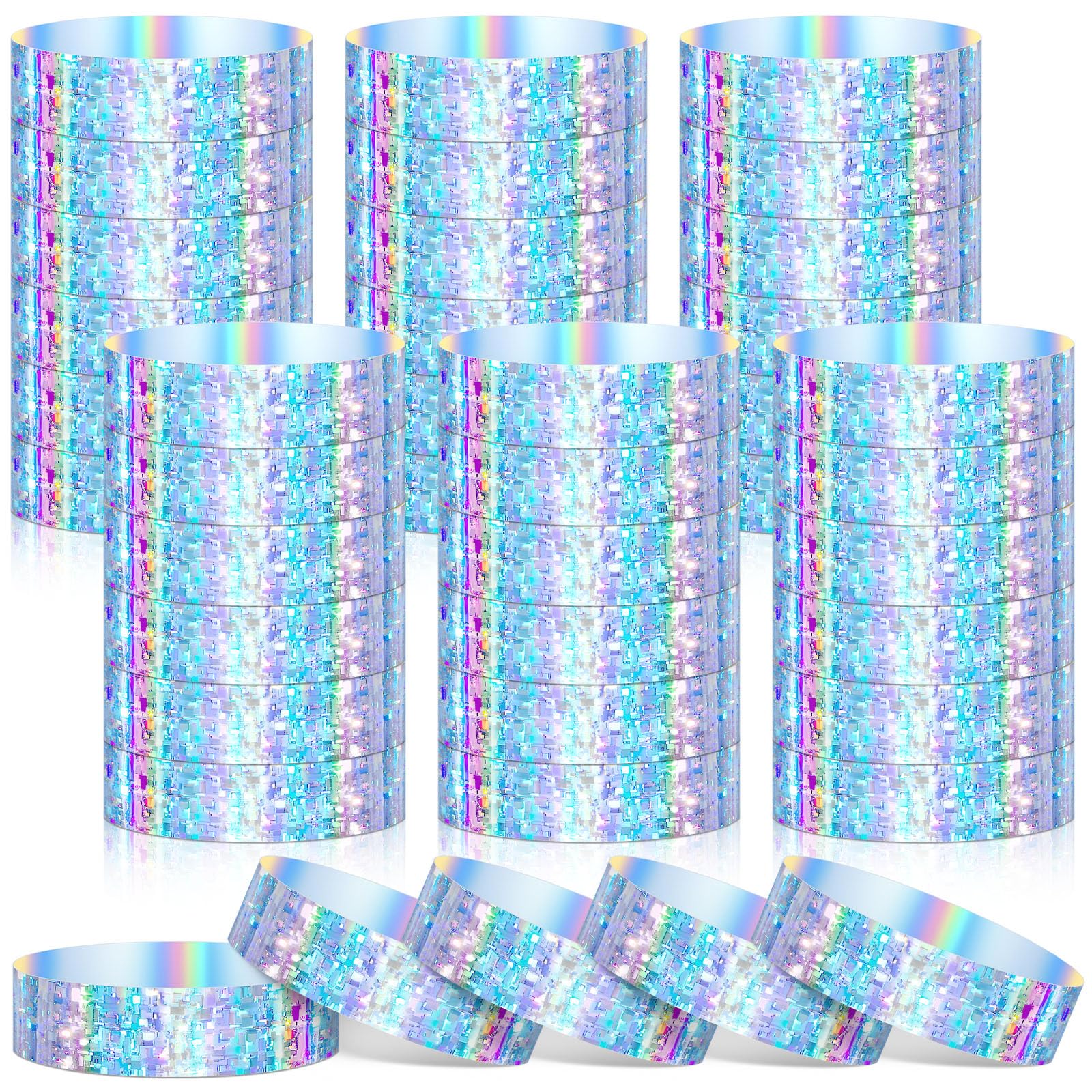 100 pulseras holográficas de plástico para fiestas, vinilo de color impermeable para eventos, fiestas, festivales y conciertos