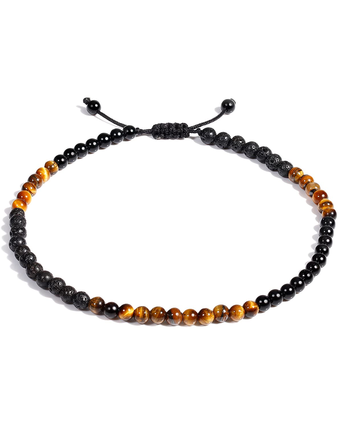 Jewever Tobillera para mujer, ojo de tigre, roca de lava, cristales curativos de obsidiana negra, piedras preciosas de buena suert