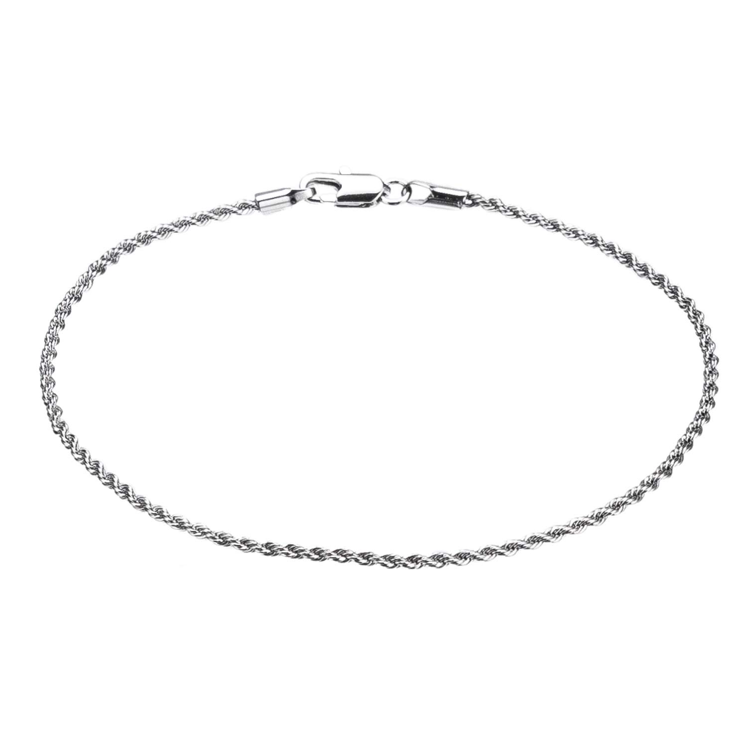 kelistom Tobillera de cadena chapada en oro blanco de 18 quilates, de acero inoxidable de 0.118 pulgadas, para mujeres y hombres,
