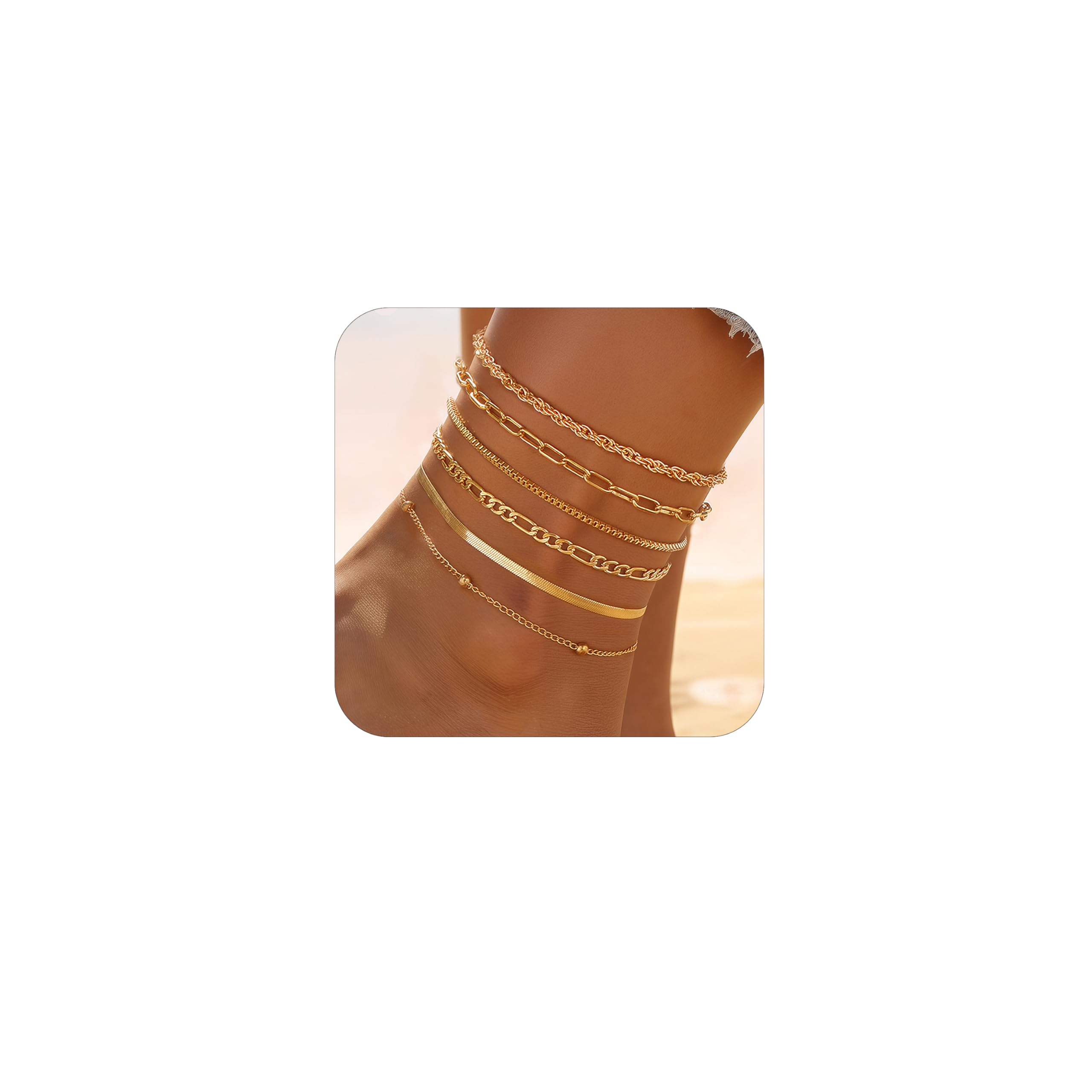 Kyerlyn Gold Ankle Bracelets for Women non tarnish,14K Gold Waterproof Anklets Link Beaded Set Layered Shark Anklet for Women Gold