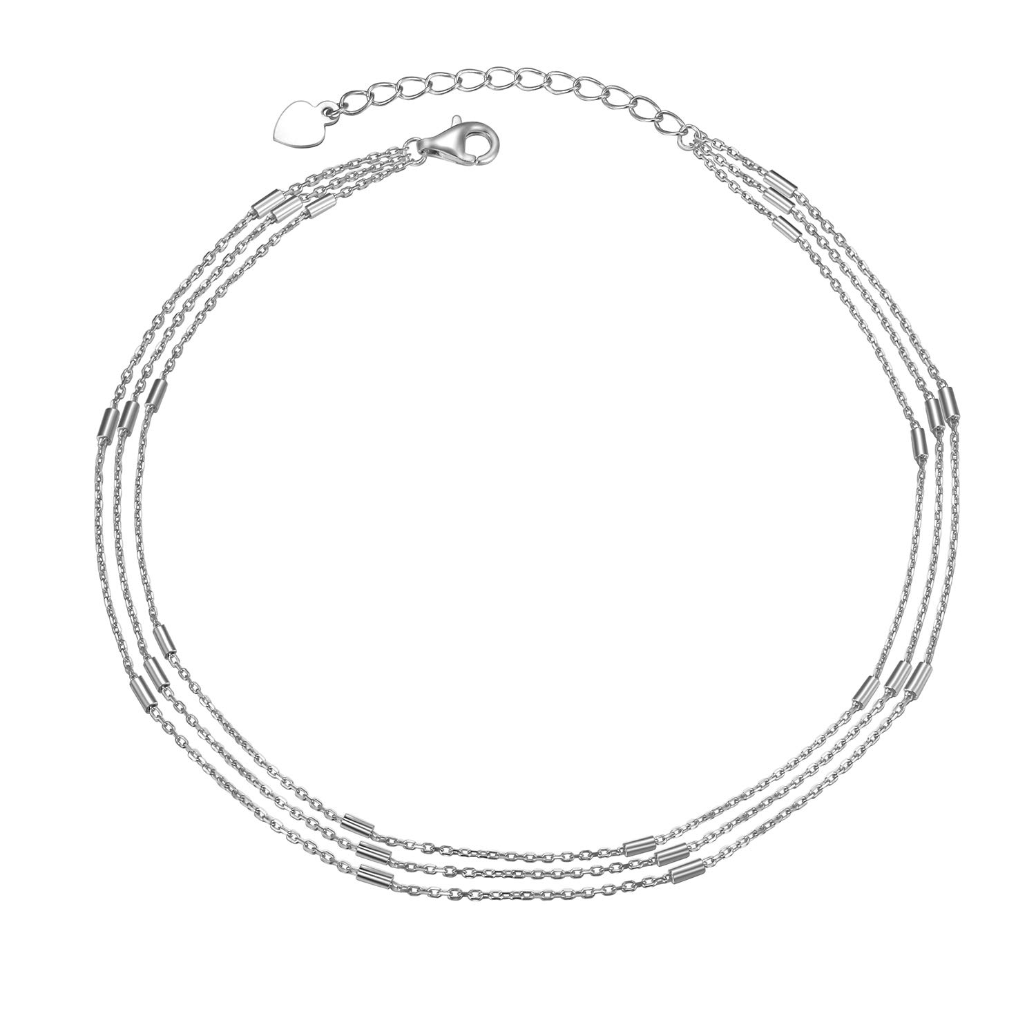 ChicSilver Tobilleras de plata de ley 925 para mujer, tobillera de corazón en capas con cuentas para mujer (con caja de regalo)