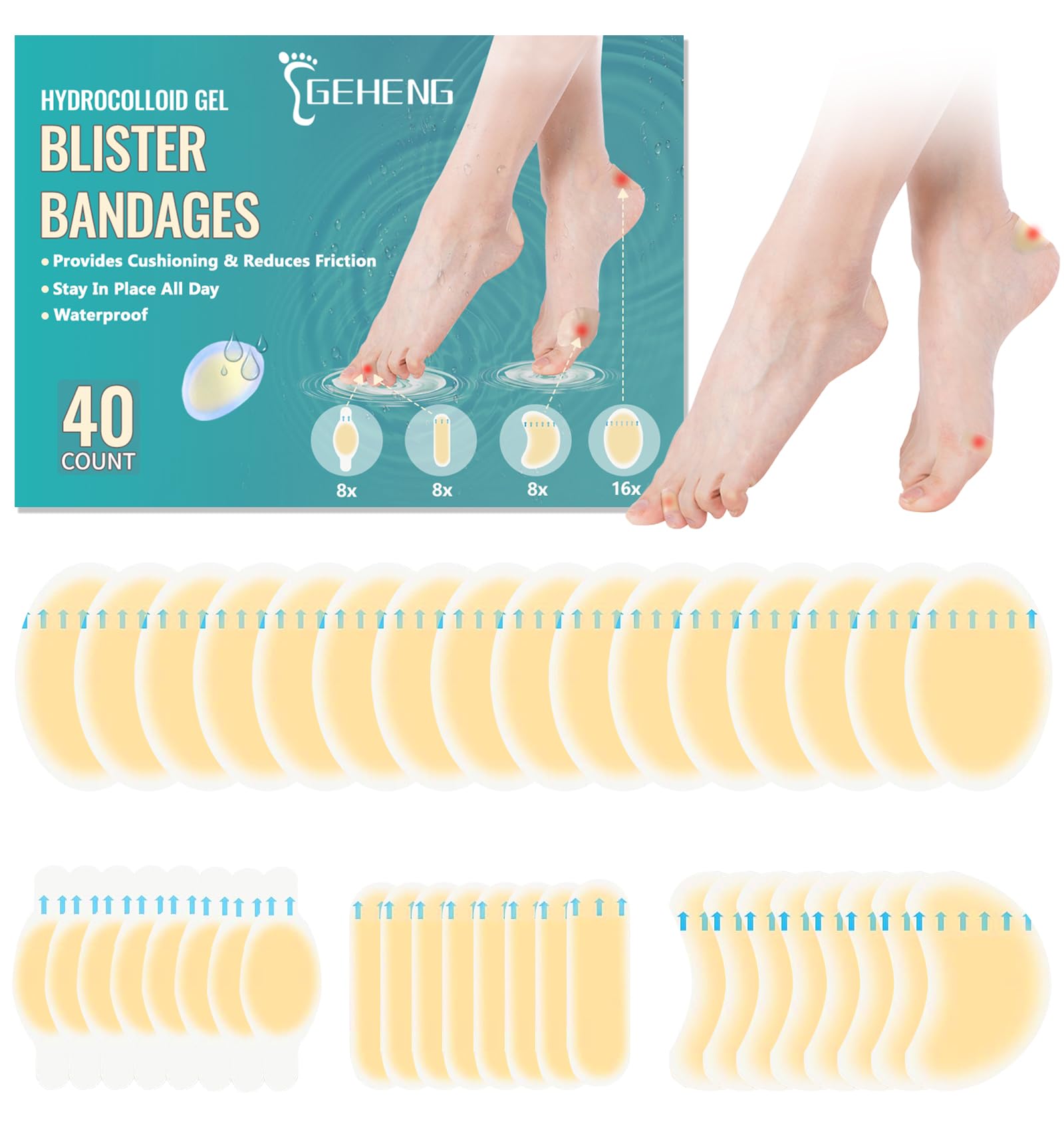 Vendas de gel hidrocoloide para pies, protectores adhesivos impermeables para el talón, dedos de los pies, bola de pie, alivio del