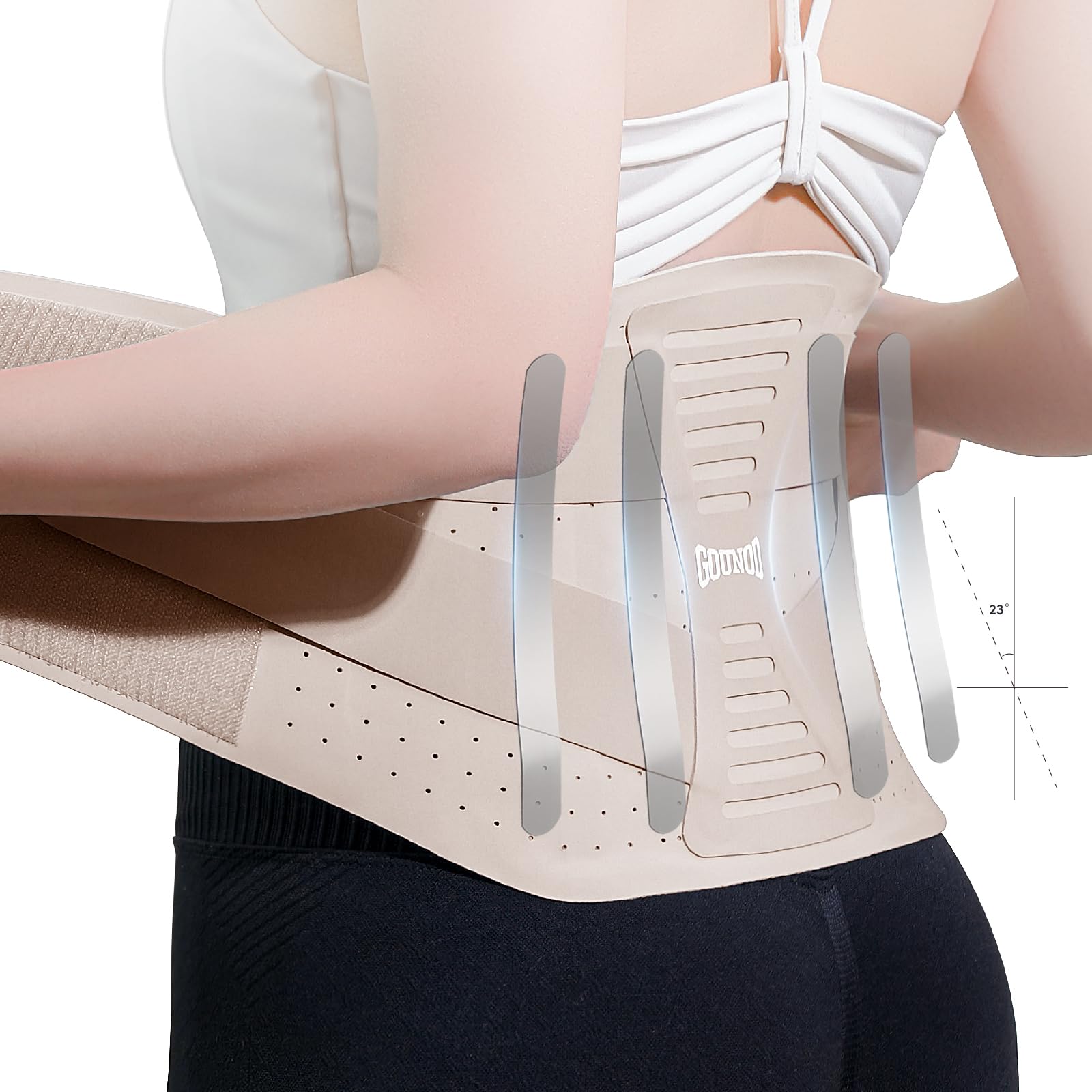 GOUNOD Soporte de espalda ajustable para el dolor de espalda baja para mujeres y hombres, soporte extraíble para hernia de disco,