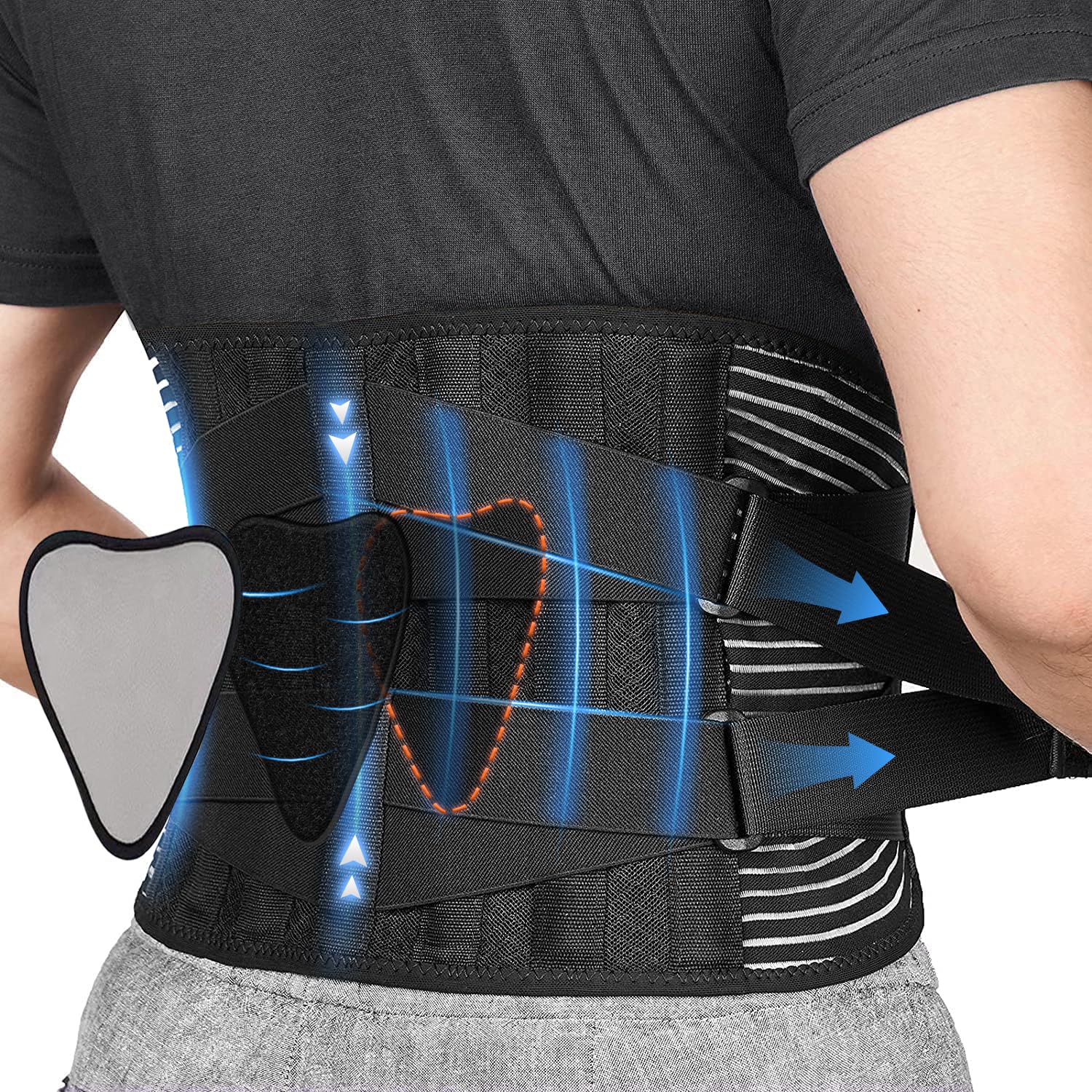 Teyssor Soporte de espalda para aliviar el dolor de espalda baja, cinturón de apoyo lumbar ajustable con 6 estancias, cinturón de