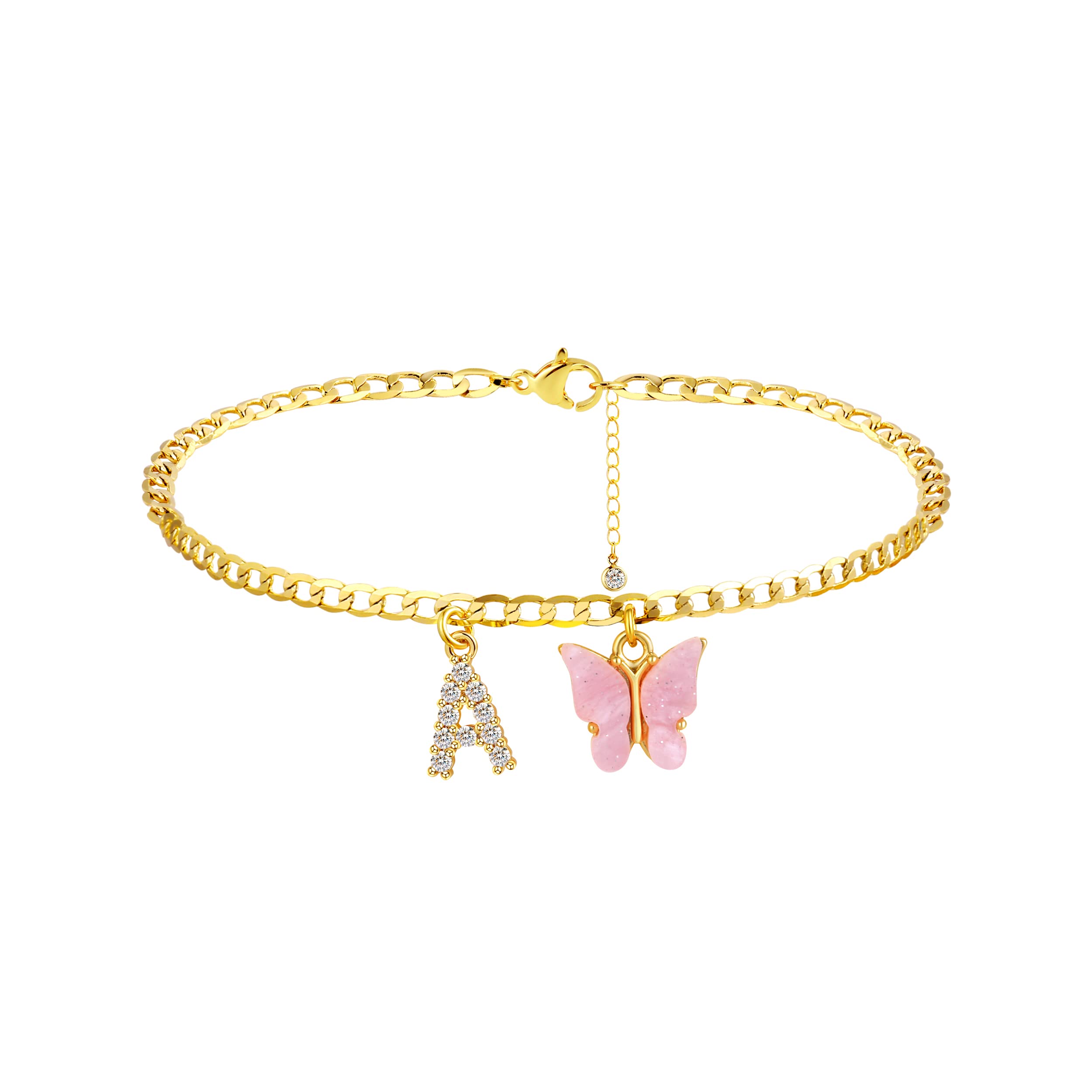 VIROMY Tobilleras chapadas en oro de 14 quilates con inicial de mariposa, hechas a mano, cadena cubana, mariposa blanca, letra A-Z
