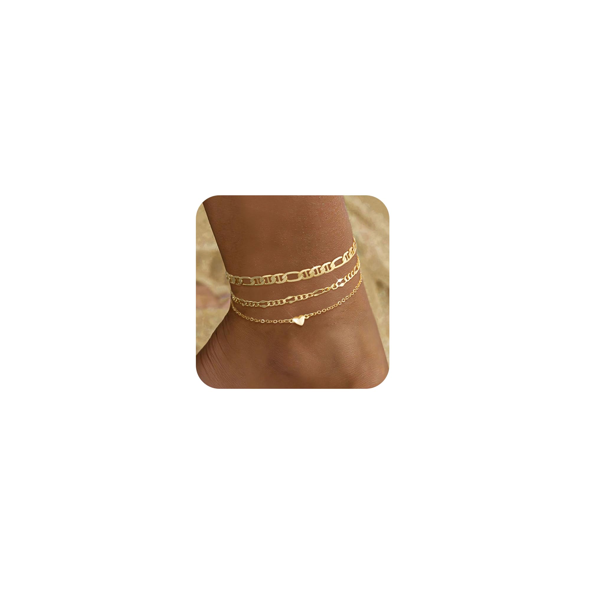 Ankle Bracelets for Women, 14K Gold Plated Waterproof Dainty Anklets for Women, Hypoallergenic Trendy Lightweight Jewelry Gifts