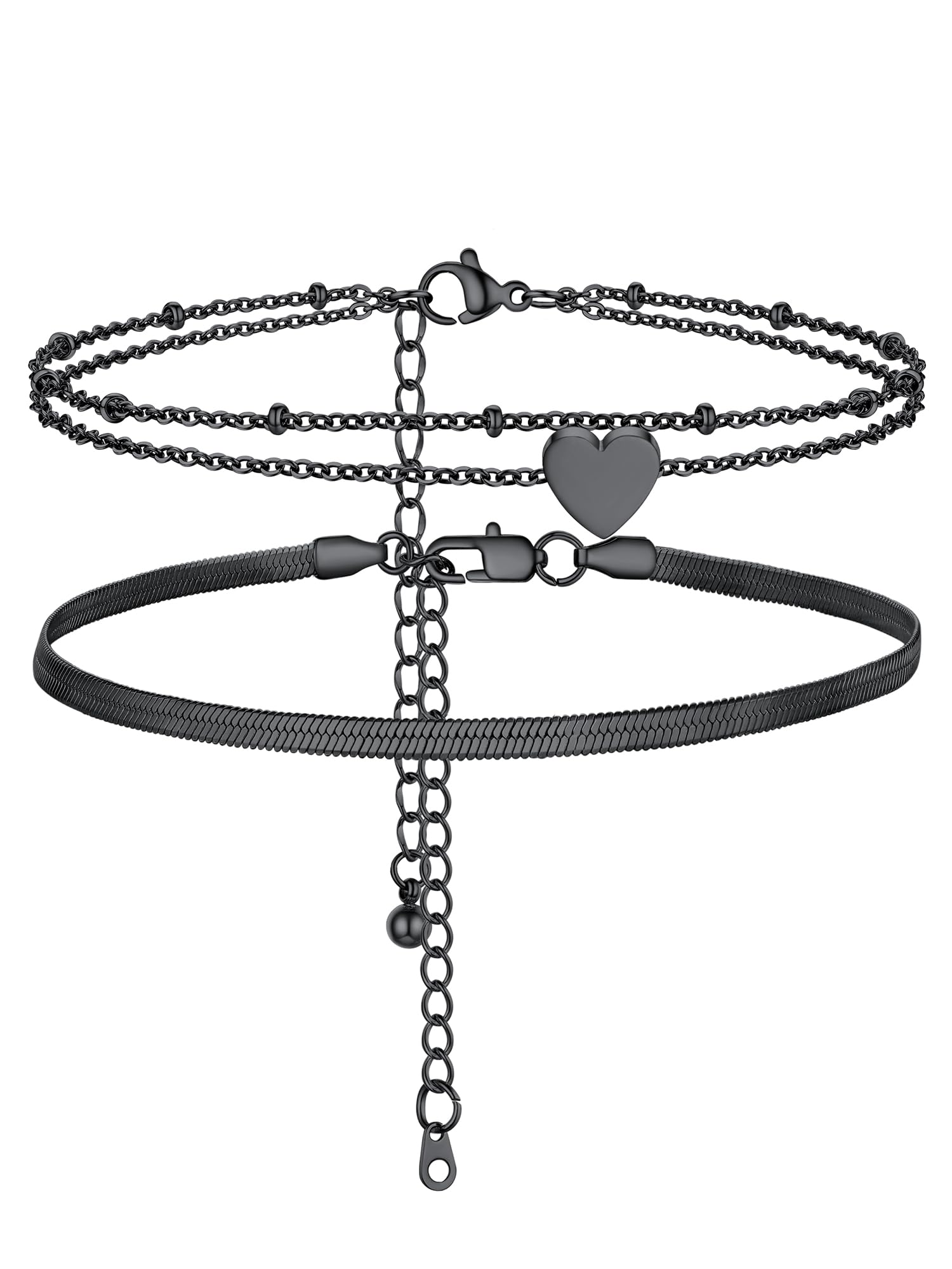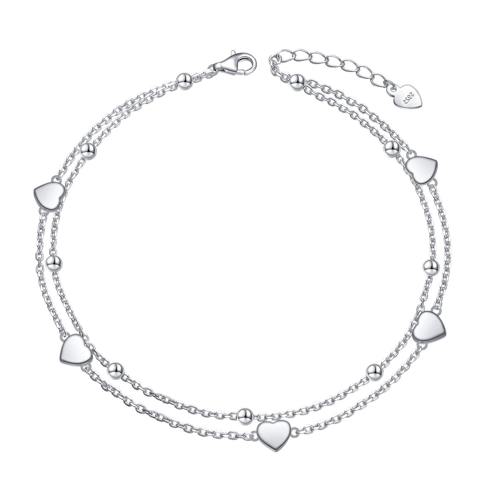 Tobilleras elásticas con cuentas para mujer, pulseras de tobillo elásticas con doble capa de corazón, impermeables, delicadas, boh
