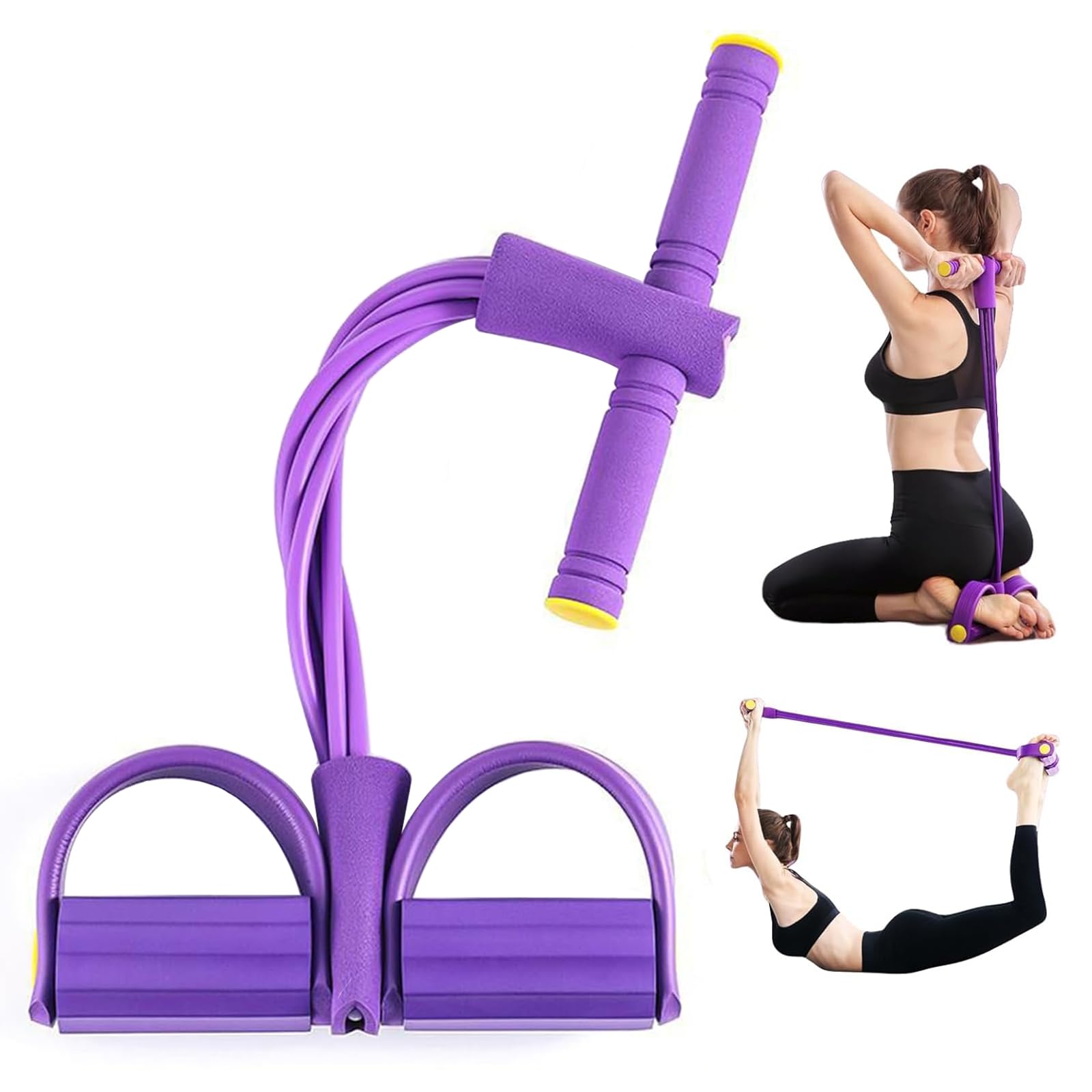 Banda de resistencia de pedal mejorada 2025, cuerda elástica de 4 tubos para hombres y mujeres, tirador de pedal para entrenamient