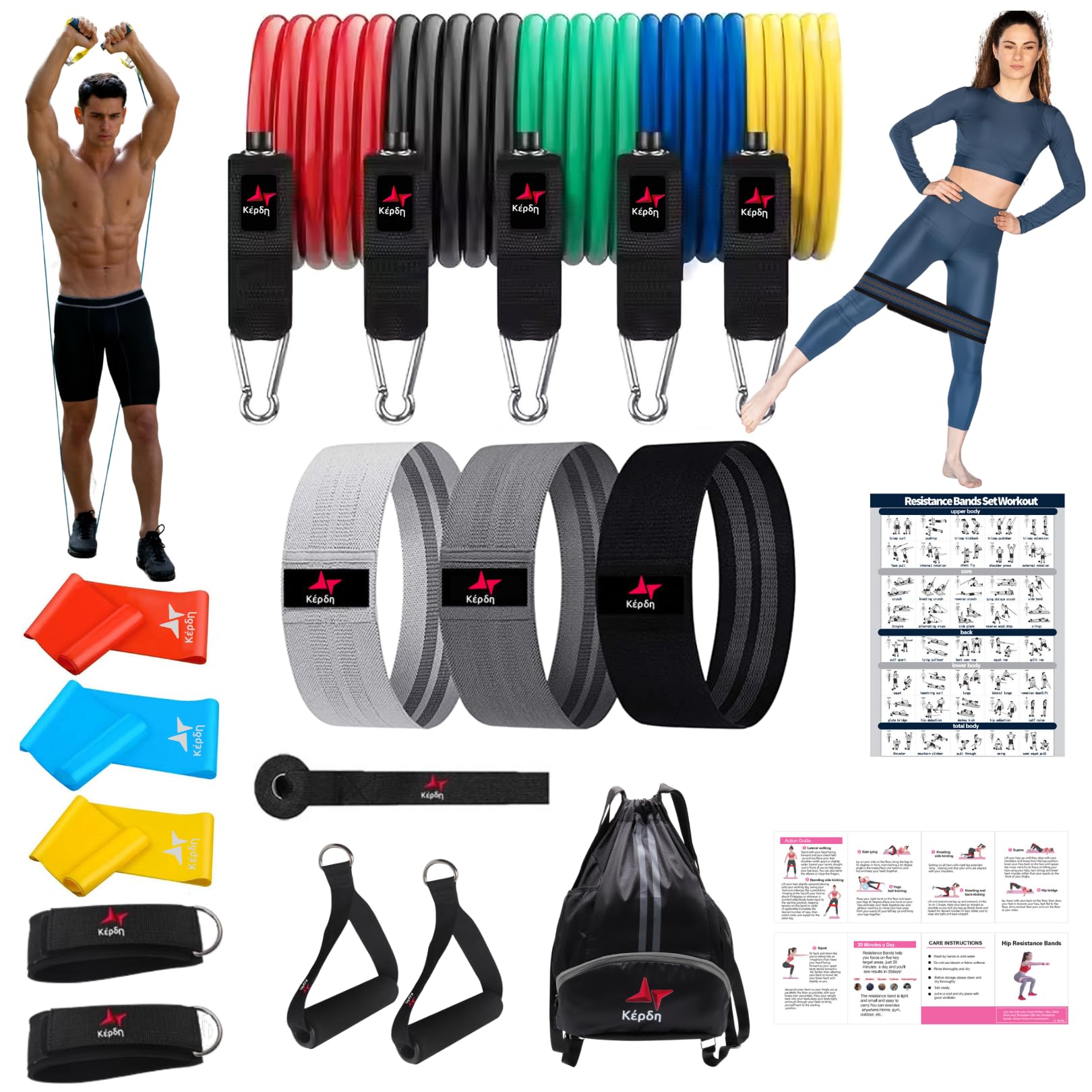 Resistance Bands Set, Himaly Exercise Bands Strength Training Fitness Bands Workout Elastic Bands with Legs Ankle Straps, Door Anc