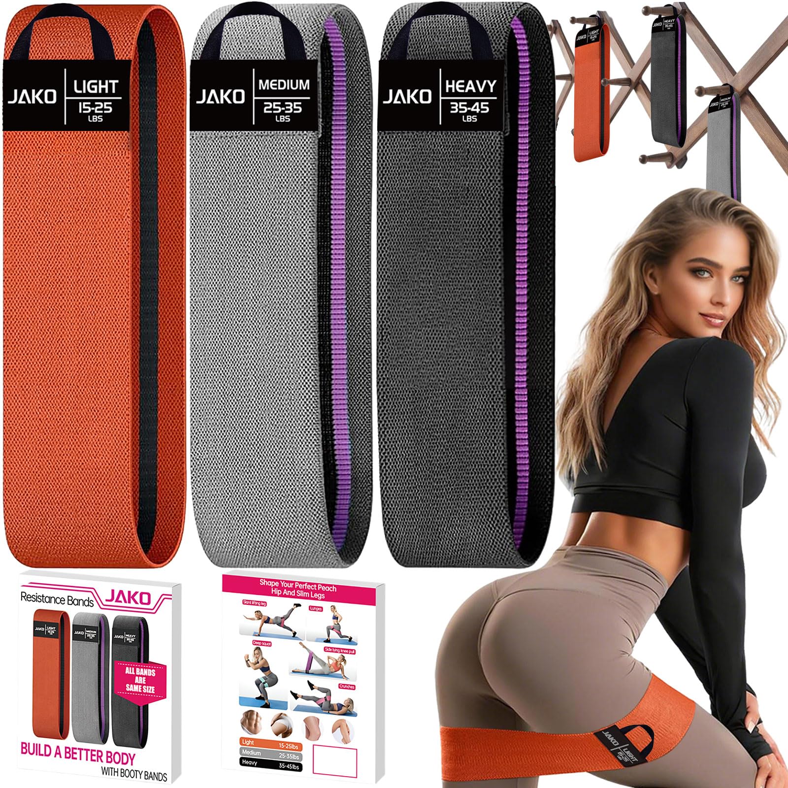 Resistance Bands for Working Out – Exercise Bands Set with Workout Guide – Fabric Elastic Bands for Physical Therapy – Fitness Ban