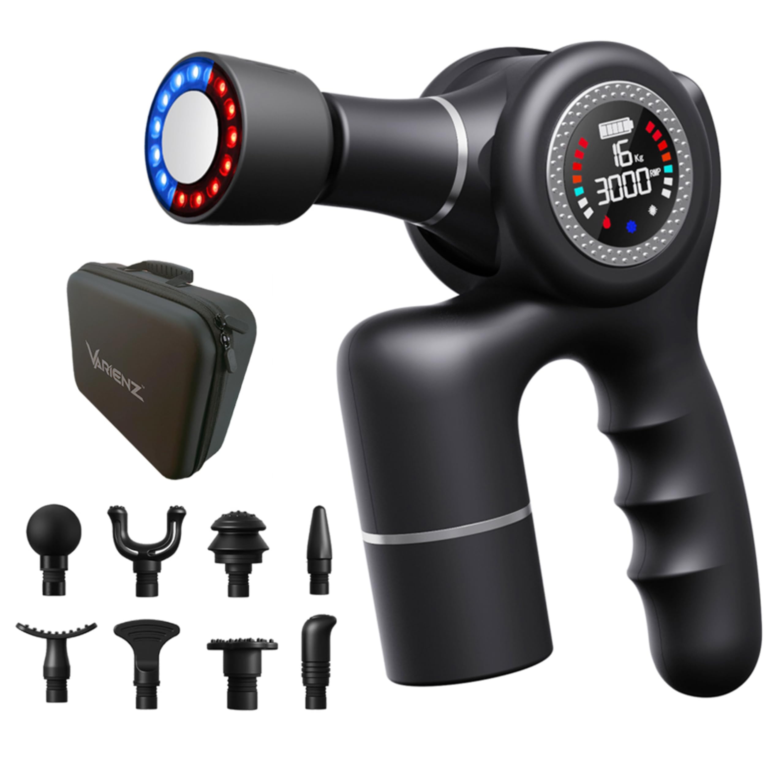 Pistola de masaje de 16 cabezas, masajeador de espalda de tejido profundo con 30 intensidades ajustables y 3 modos, masajeador elé