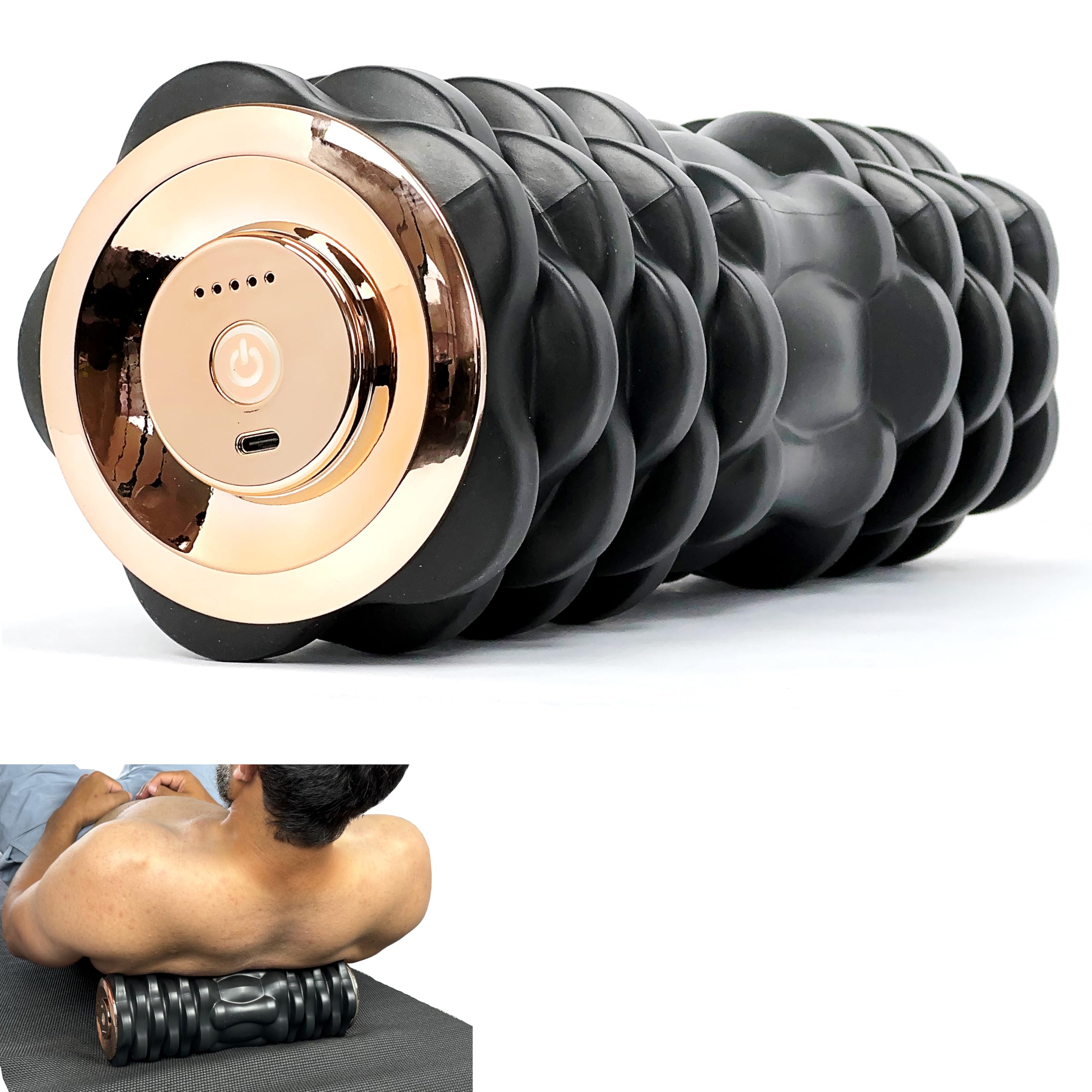 Fitster Masajeador de rodillo de espuma vibratoria, rodillo de espuma eléctrico con 5 intensidades de vibración, batería recargabl
