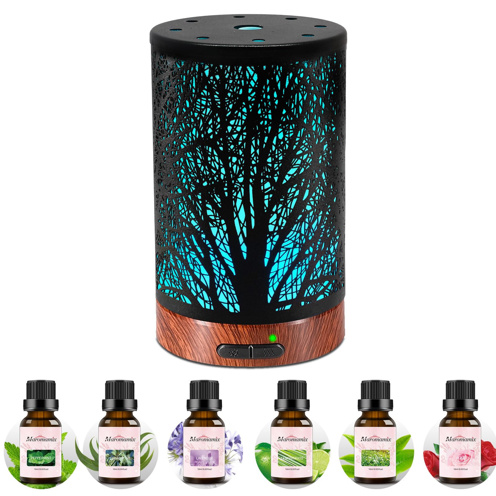 Juego de difusor de aceite y aceites esenciales, difusor de aceite de 5.1 fl oz con 6 aceites esenciales, difusor de aceite de aro