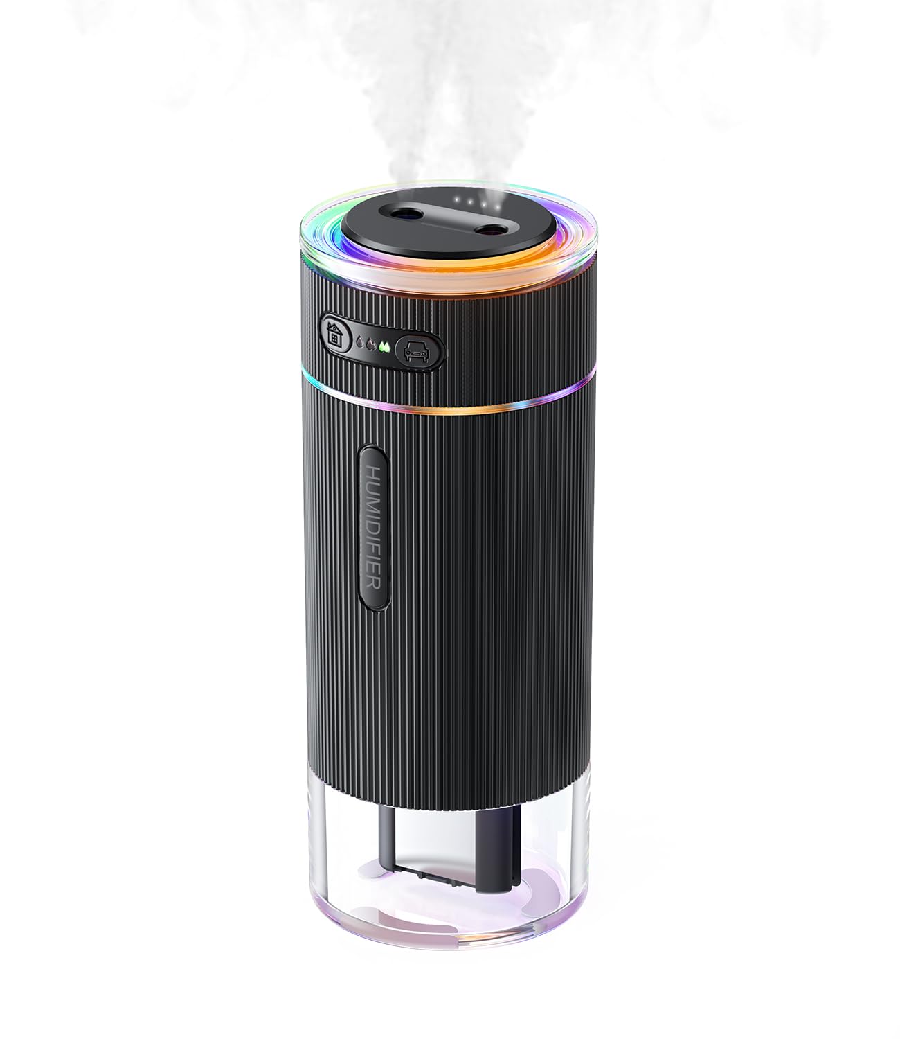 WSKEN Humidificador pequeño portátil para dormitorio, boquilla doble, niebla fría grande, iluminación ambiental, encendido y apaga