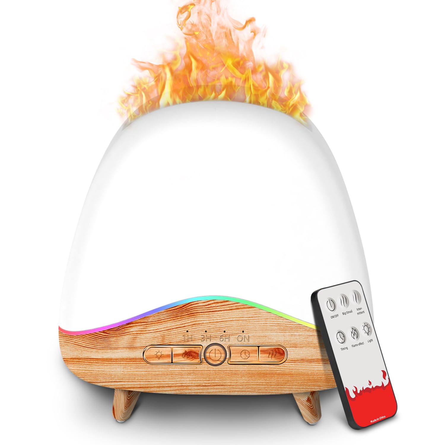Difusor de aceite esencial de llama, difusor ultrasónico de aroma de 10.1 fl oz con luces LED de 7 colores con control remoto, nie