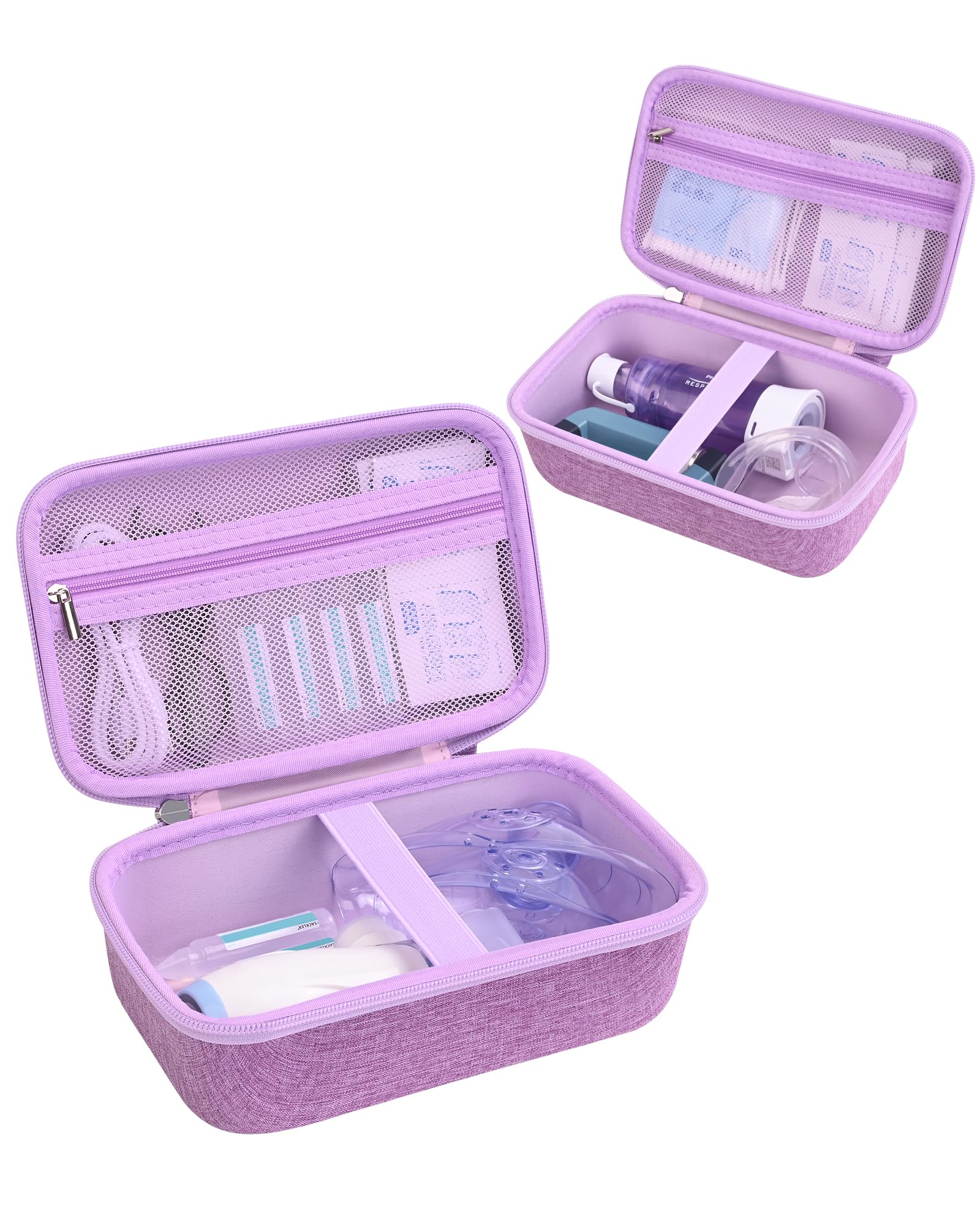 Estuche para inhalador de asma, organizador de nebulizador portátil, listo para viajar con bolsillo de malla, cremalleras dobles,