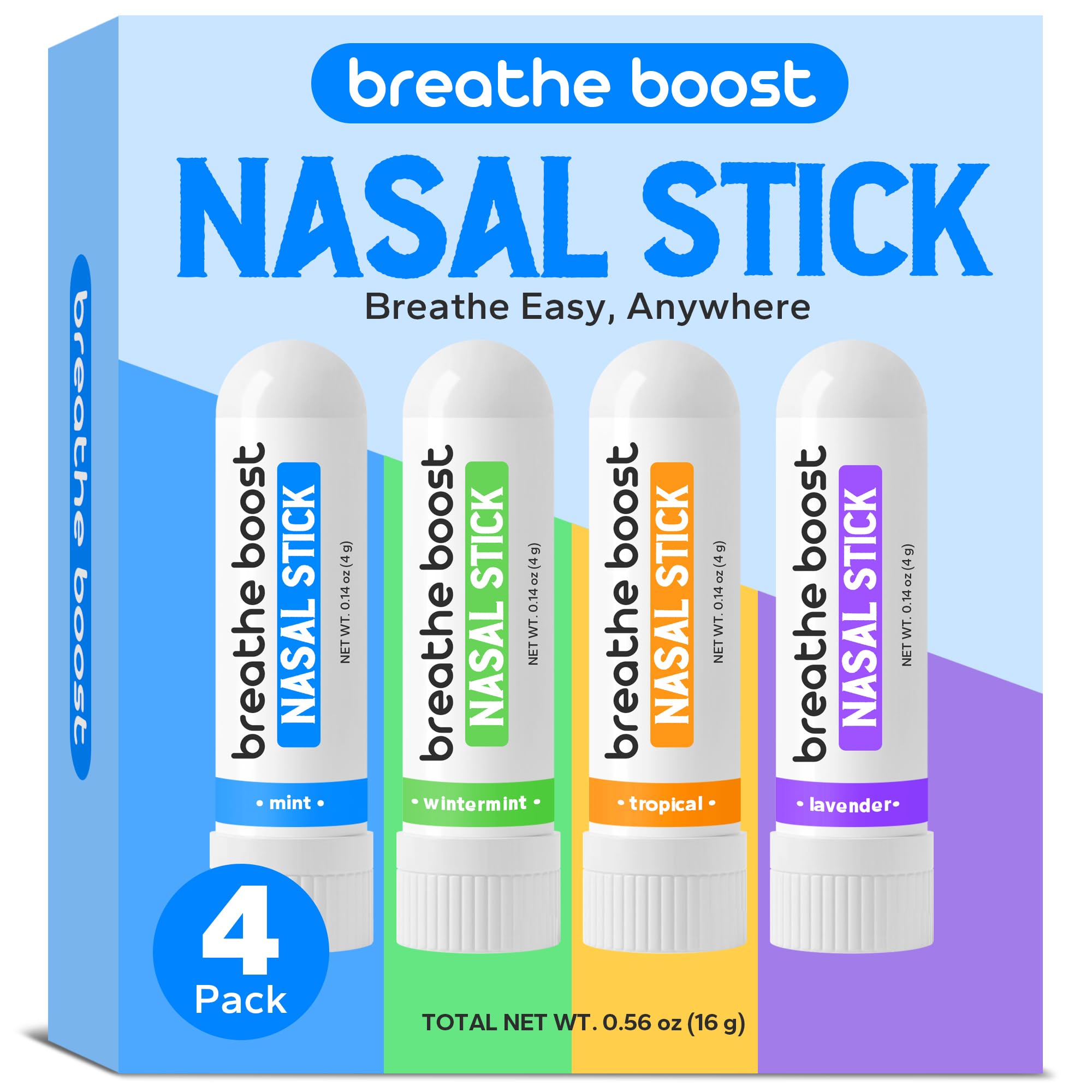 Palo nasal (paquete de 4), inhalador portátil para alivio instantáneo de senos nasales y alergias, juego de palitos nasales con me
