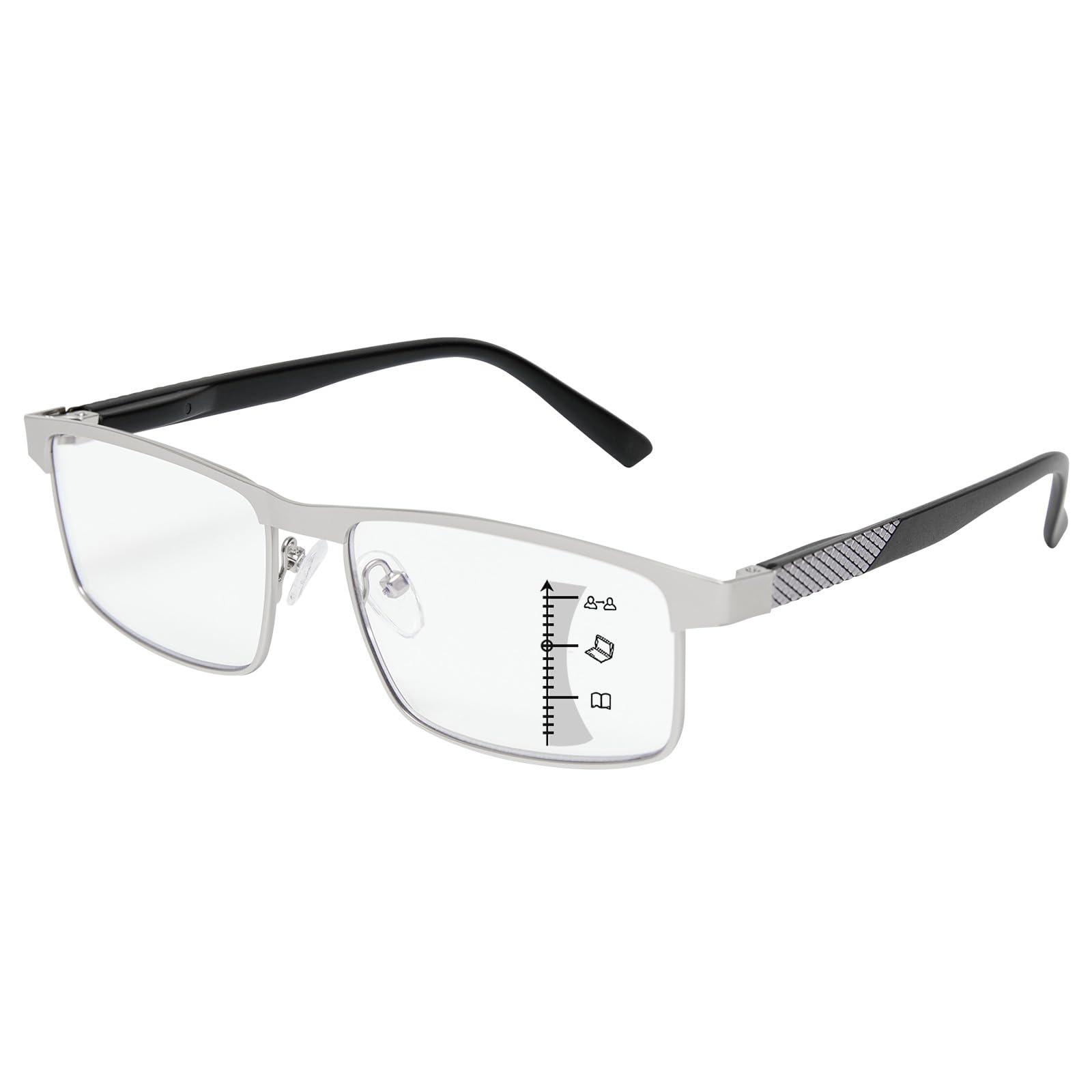 Progressive Reading Glasses Men,Titanium Metal Frame Blue Light Blocking Anti Eyestrain Multifocus Computer Readers