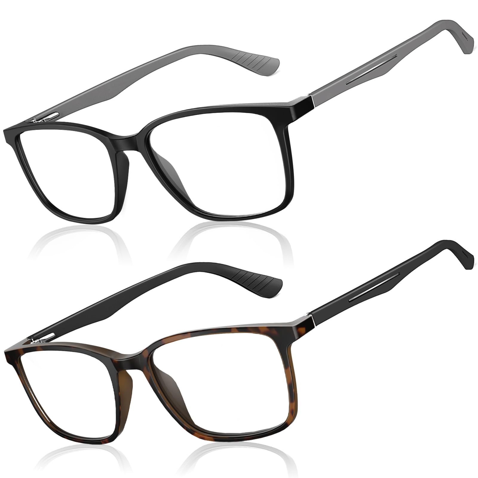 Paquete de 2 lentes de lectura superiores para hombres y mujeres, estilo deportivo, TR90, marco cuadrado, antiluz azul, ligeros, l