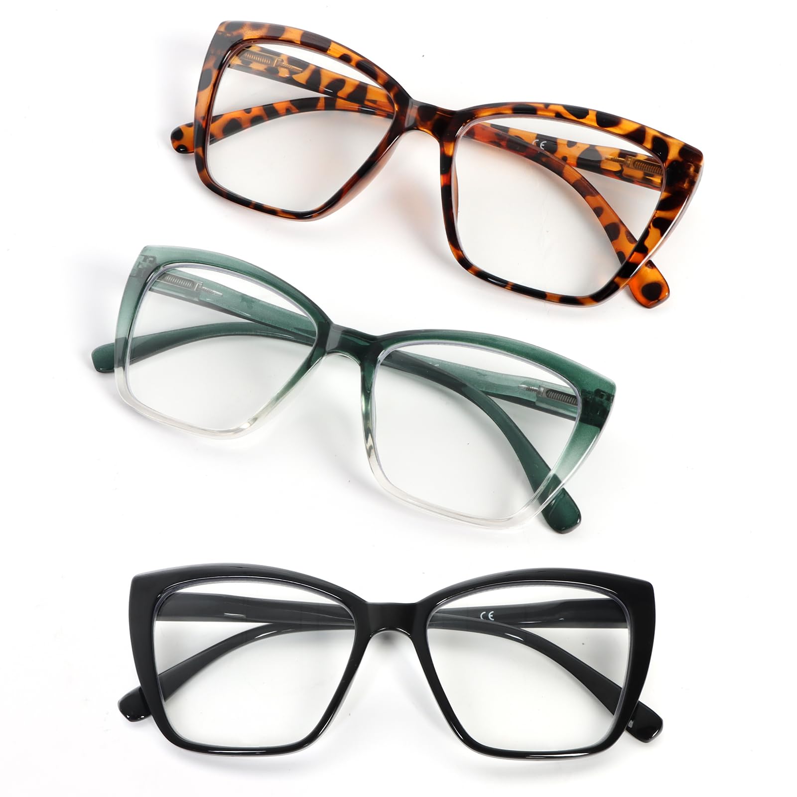 KoKoBin Paquete de 3 lentes de lectura para mujer, bloqueo de luz azul, diseño de ojo de gato con bisagra de resorte
