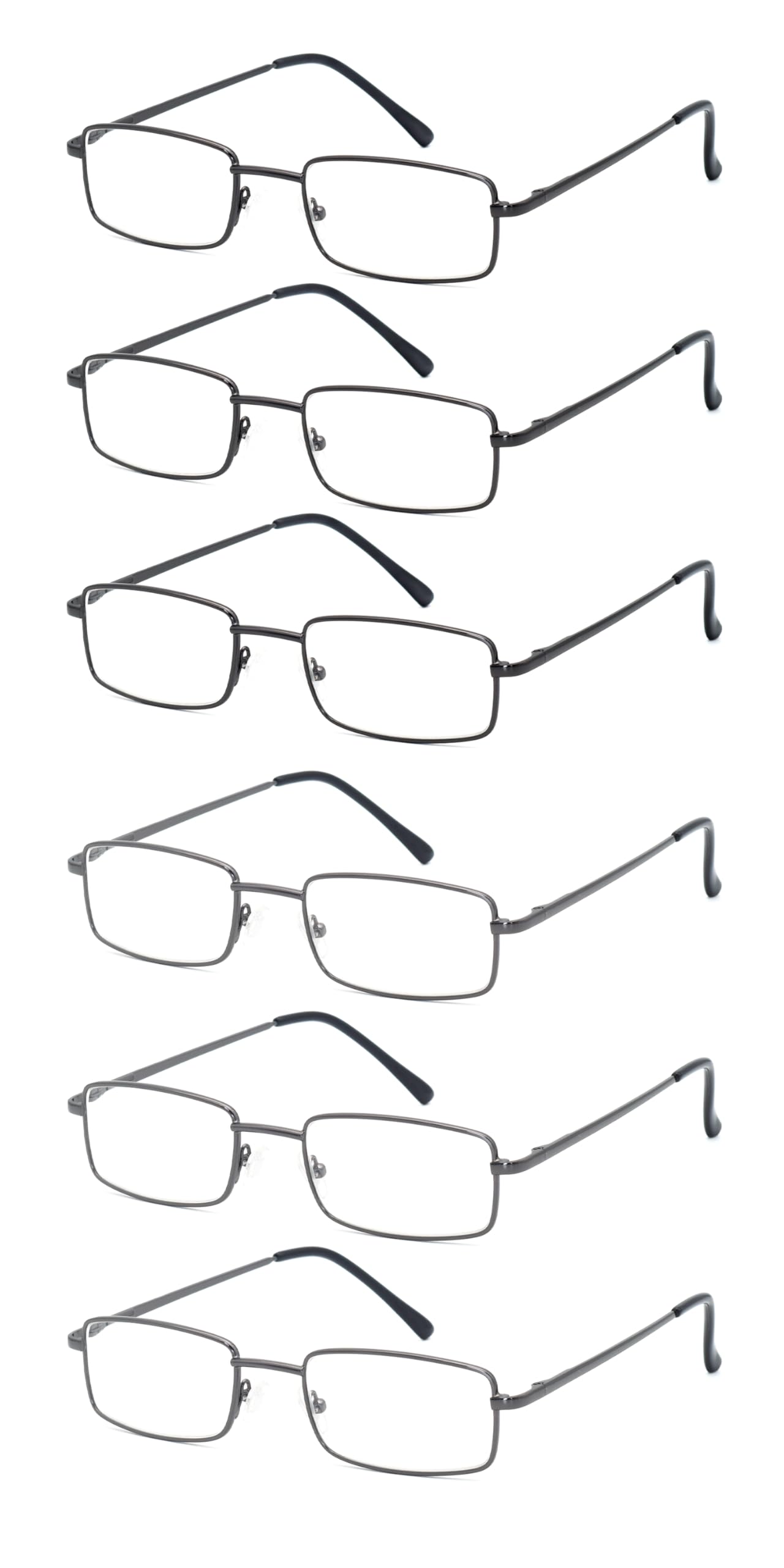 Paquete de 6 lentes de lectura de metal para hombres y mujeres, lectores de bisagra de resorte, lente transparente, revestimiento