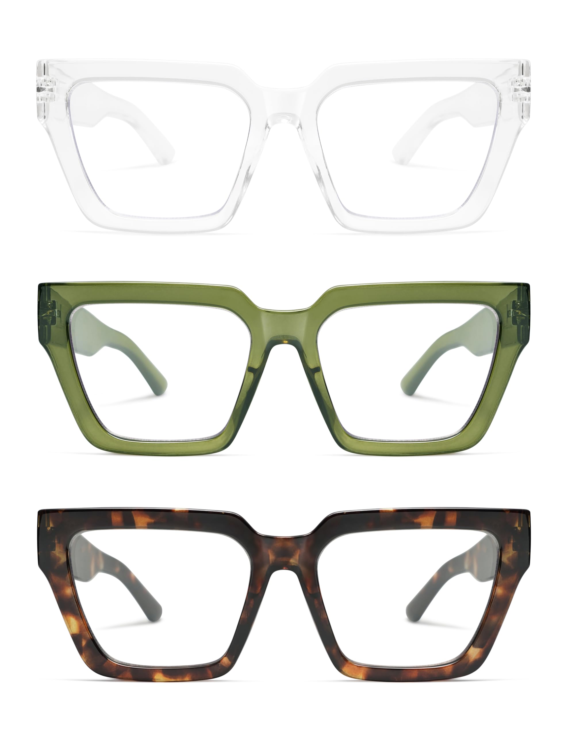 HIGHLIKE 3-Pack Reading Glasses for Women Stylish Oprah Cat-Eye Spring Hinge Readers Anti Blue Light Eyestrain/Glare/UV